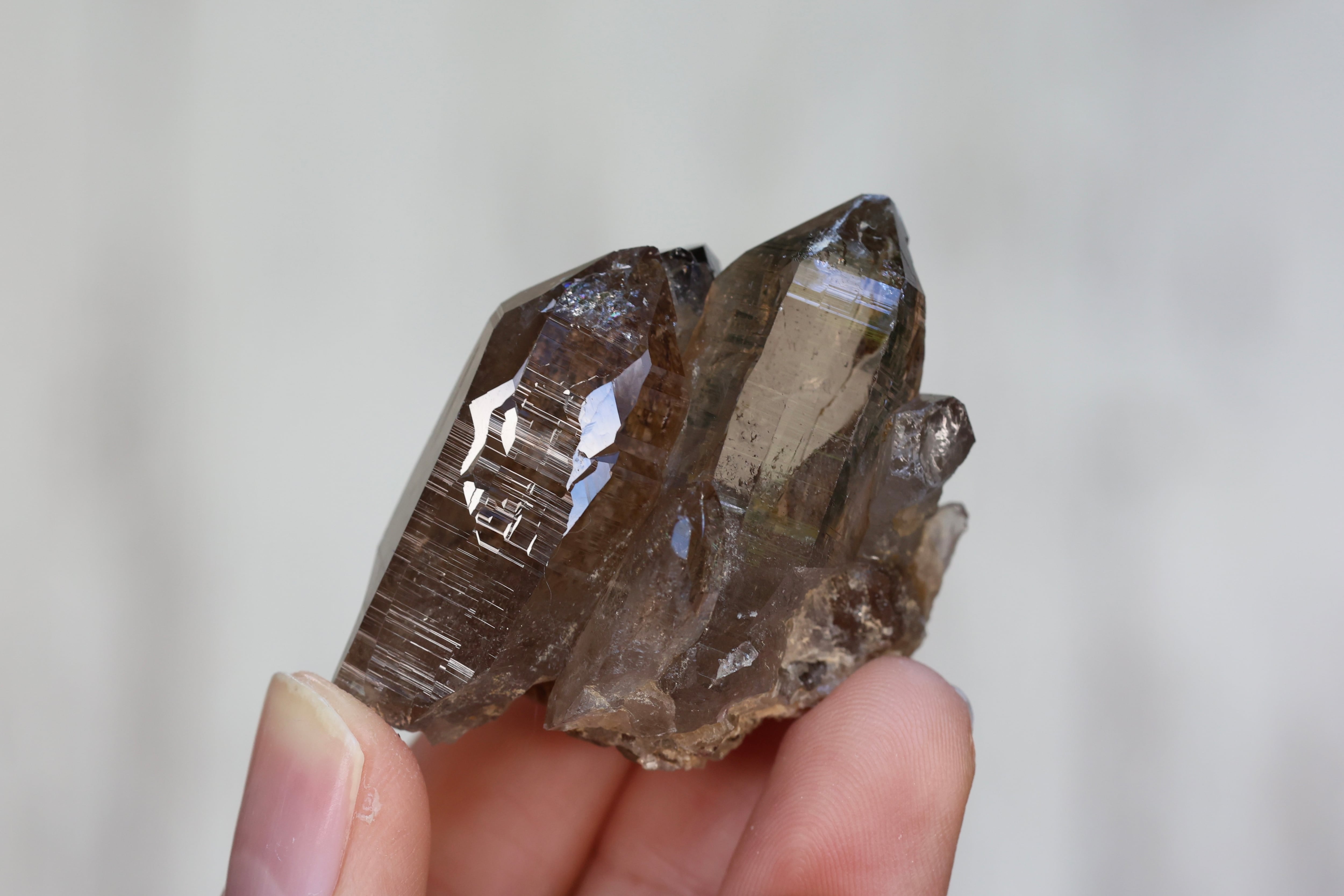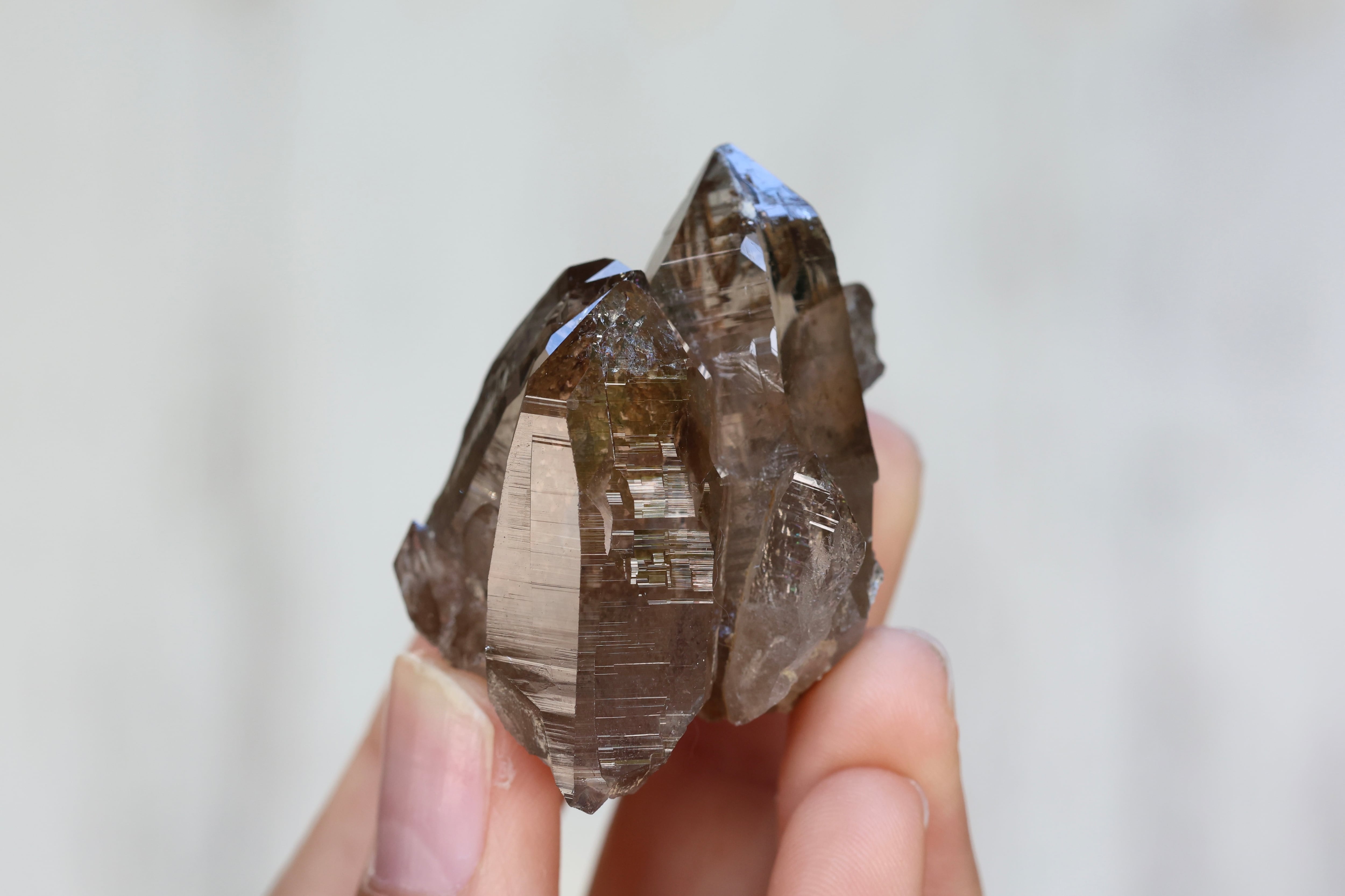 世界最高峰、エベレストがあるネパールの地で産まれ育ったガウリシャンカール産のヒマラヤ水晶です。過酷な環境の中育った水晶の石肌に無数にある細かな層のような横線は、今もなお地殻変動によりゆっくりと成長し動き続けるヒマラヤ山脈の時の流れを感じさせてくれます。