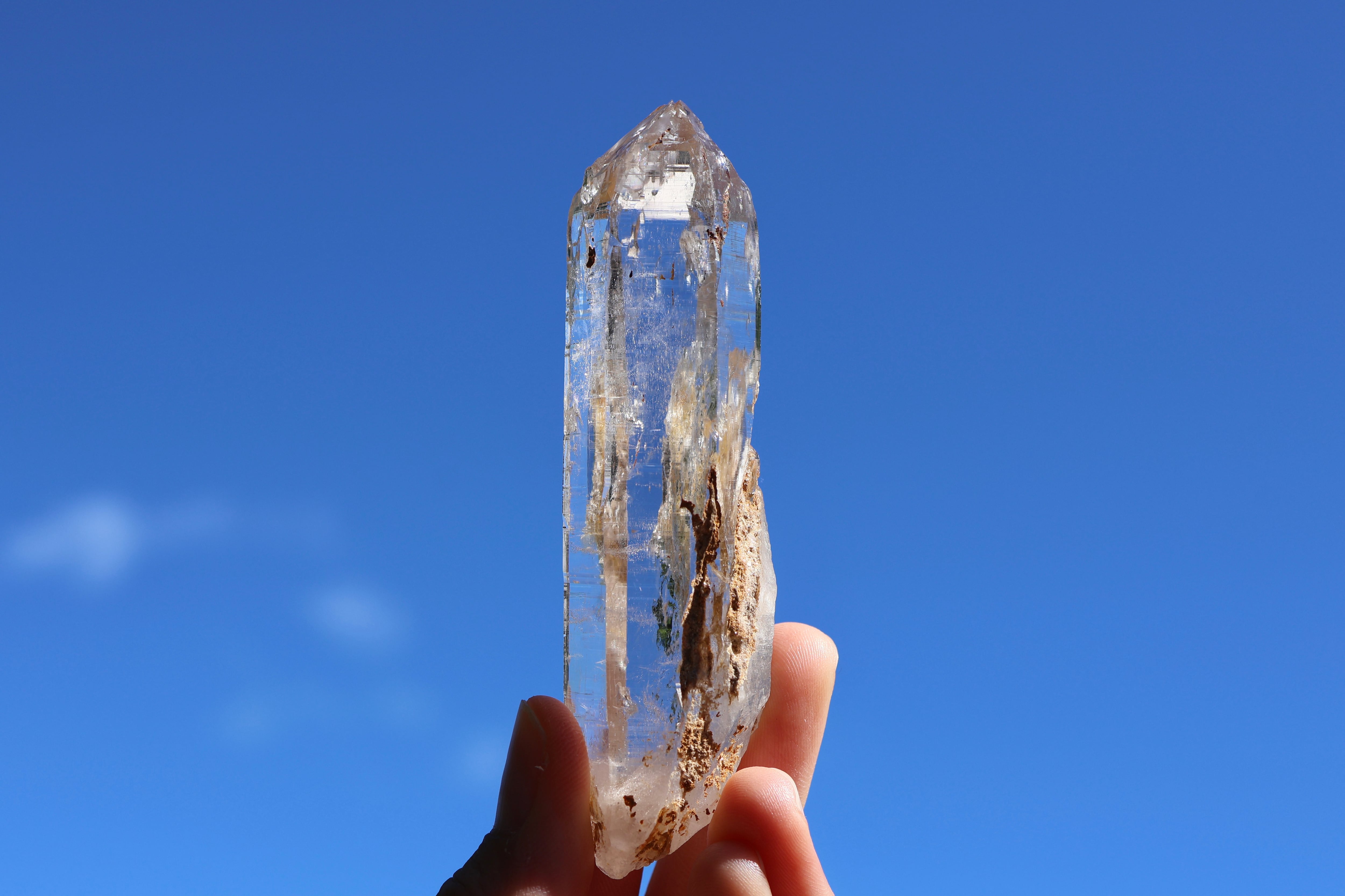 世界最高峰、エベレストがあるネパールの地で産まれ育ったガネーシュヒマール産のヒマラヤ水晶です。過酷な環境の中育った水晶の石肌に無数にある細かな層のような横線は、今もなお地殻変動によりゆっくりと成長し動き続けるヒマラヤ山脈の時の流れを感じさせてくれます。