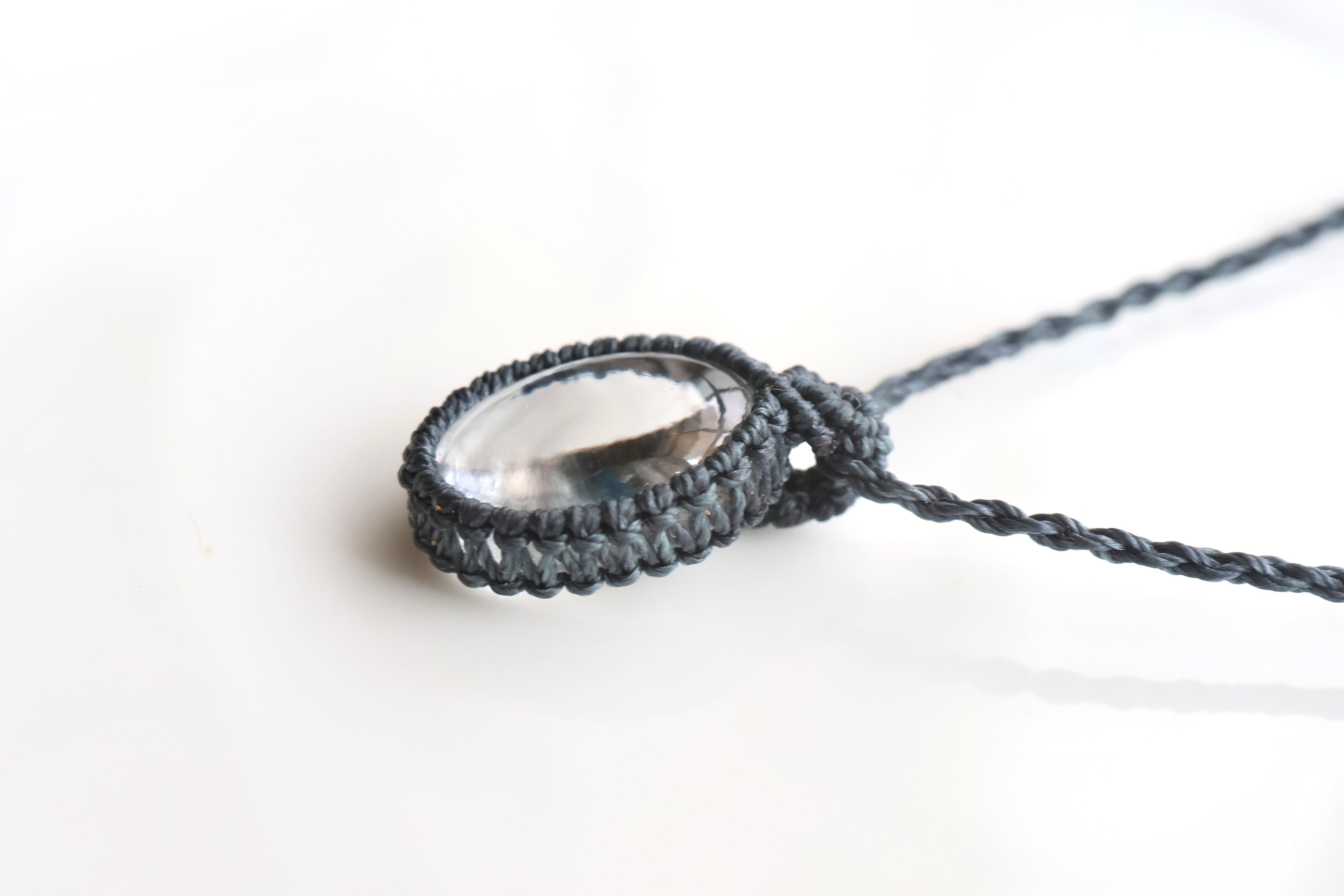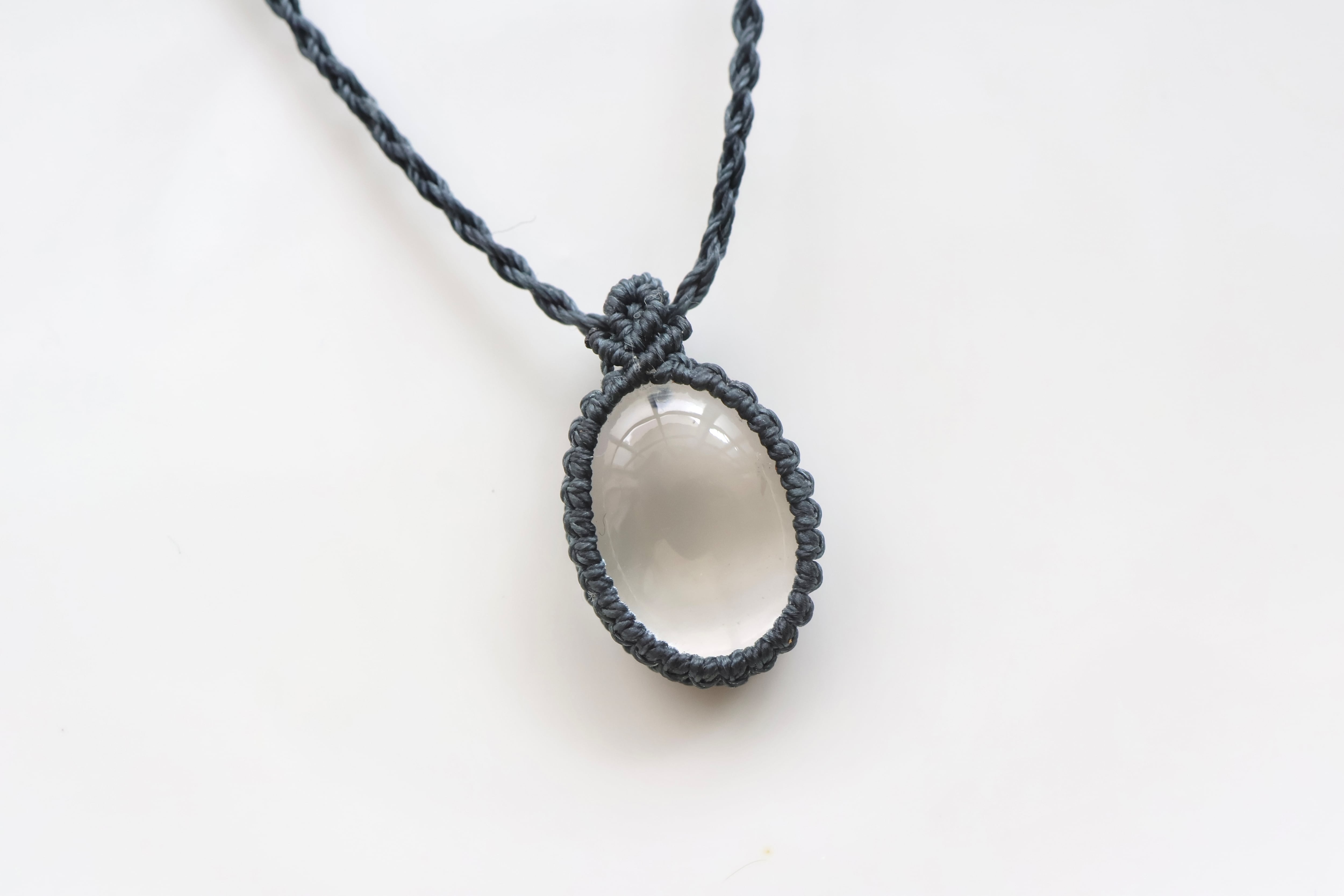 透き通る水の雫のような透明度が高いガネーシュヒマール産のヒマラヤ水晶をシンプルに編み、ペンダントに仕立てました。