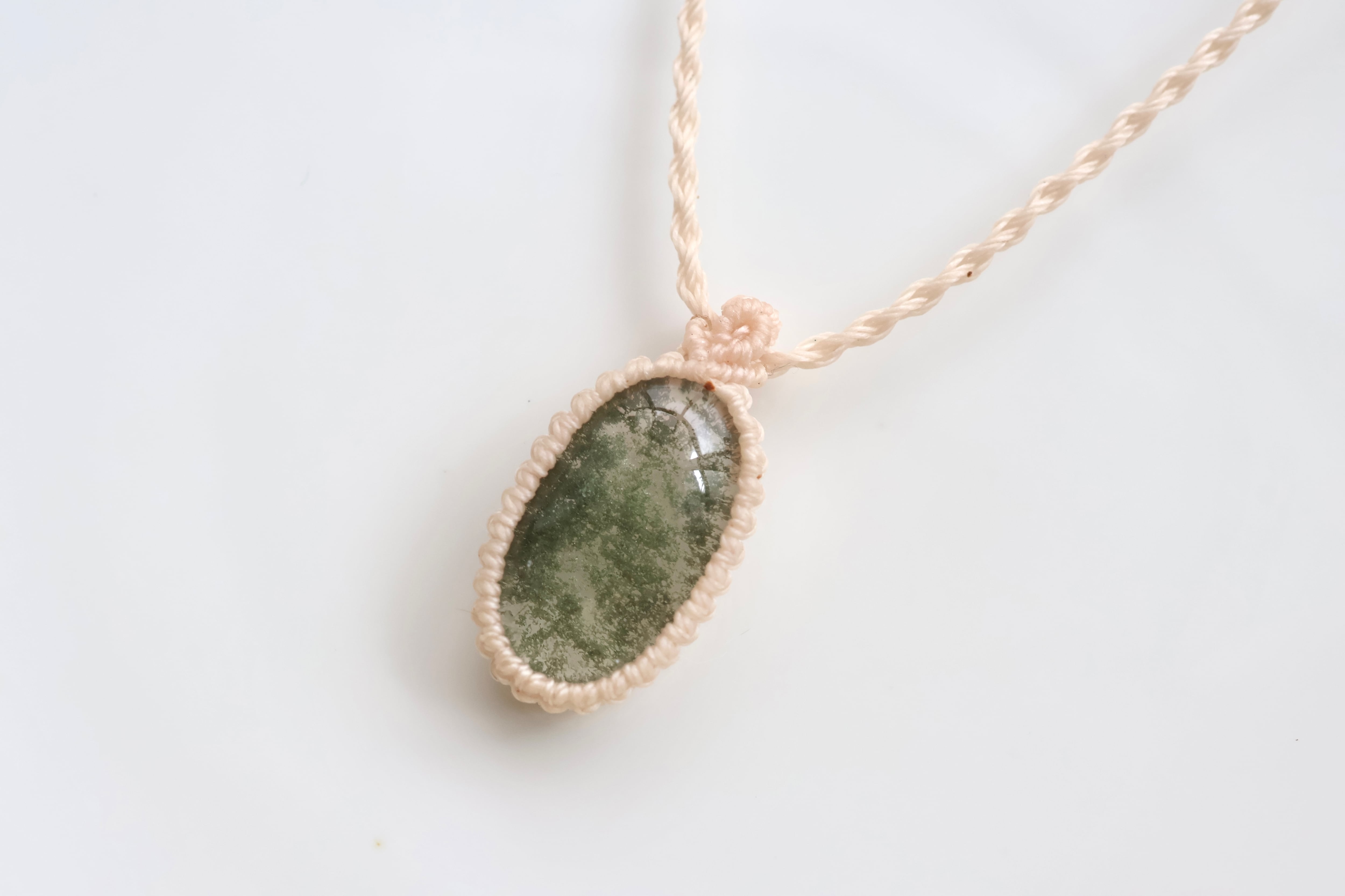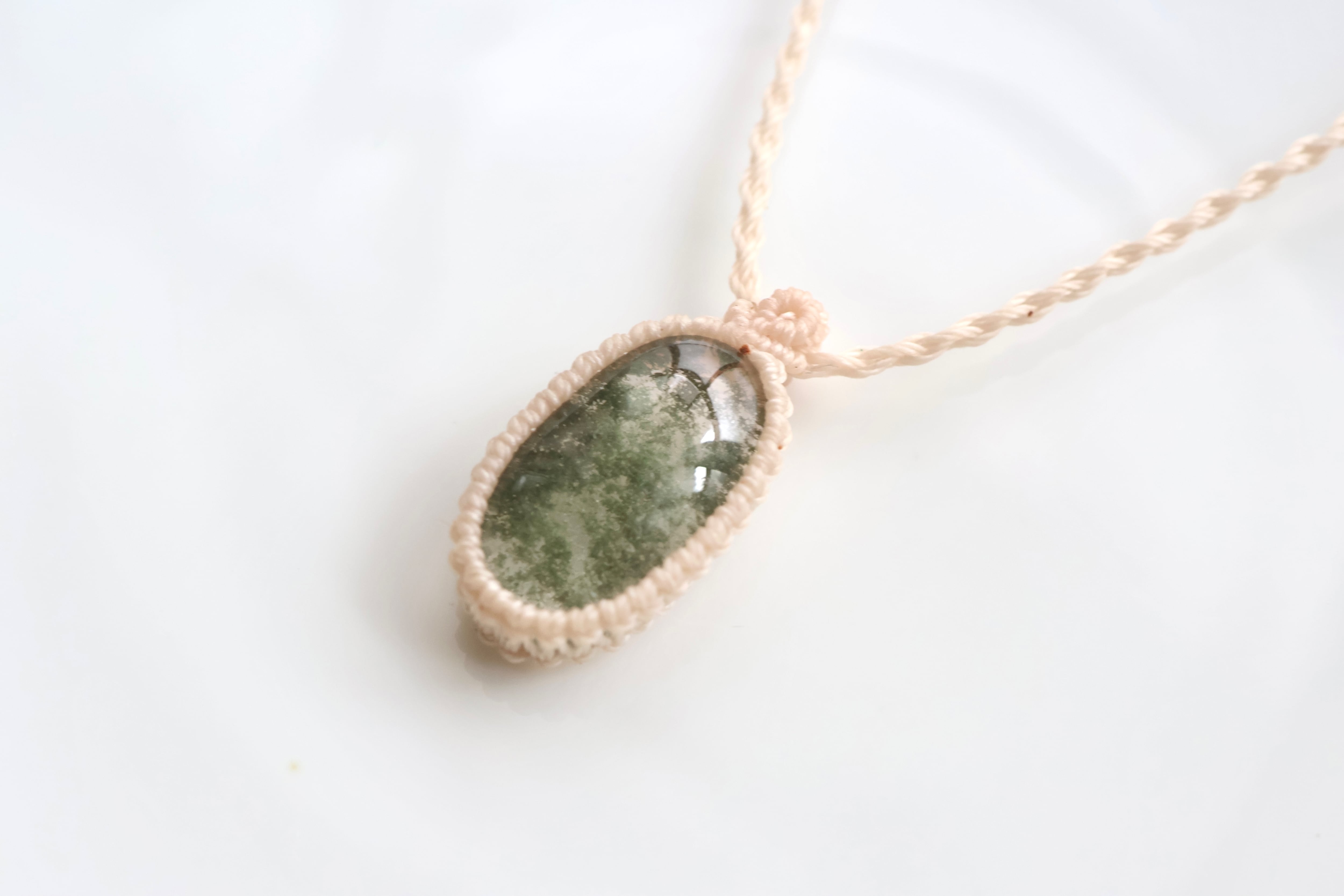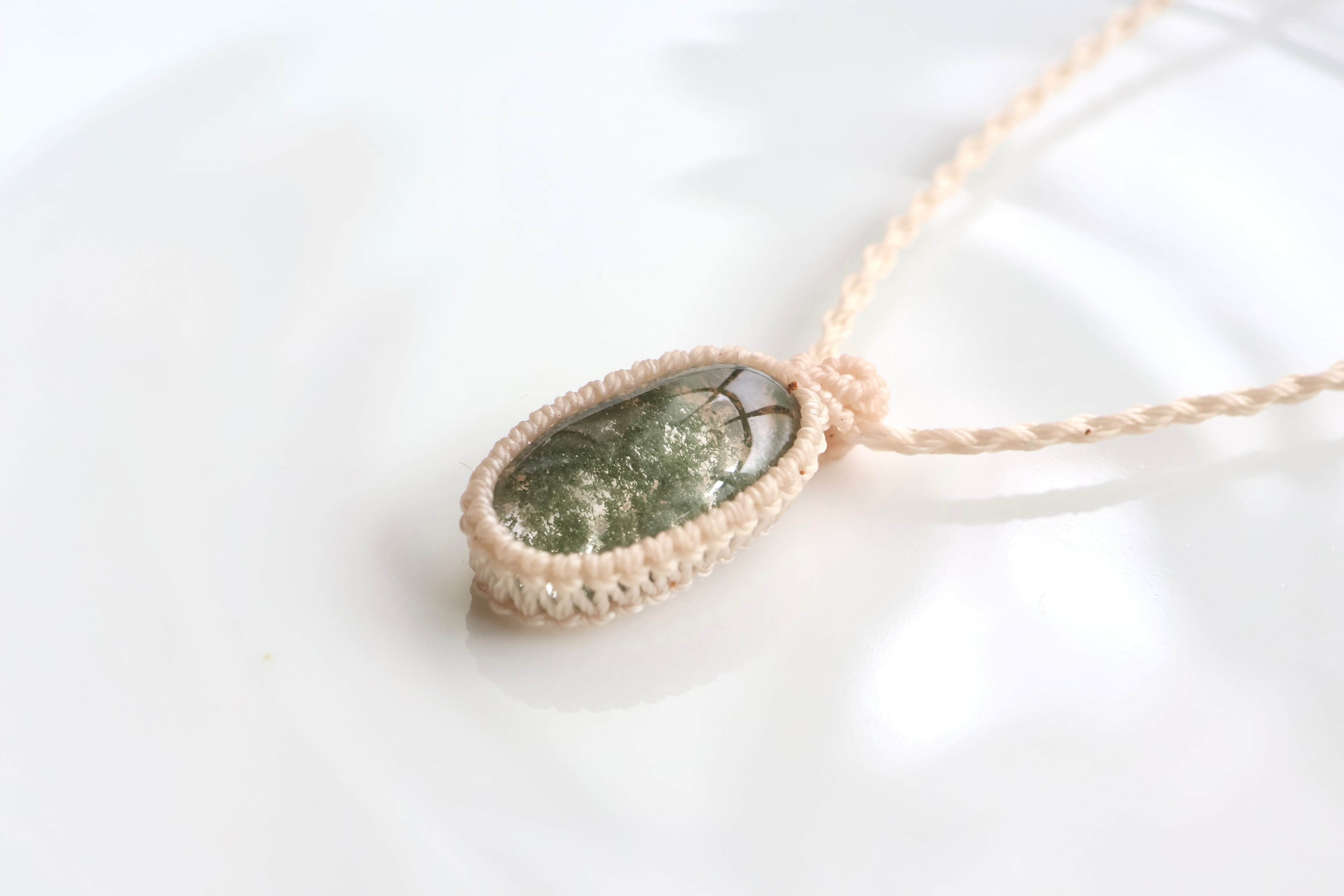 ひと編みひと編みに作り手の想いがあふれる、温かみを感じるマクラメ編みのペンダント。