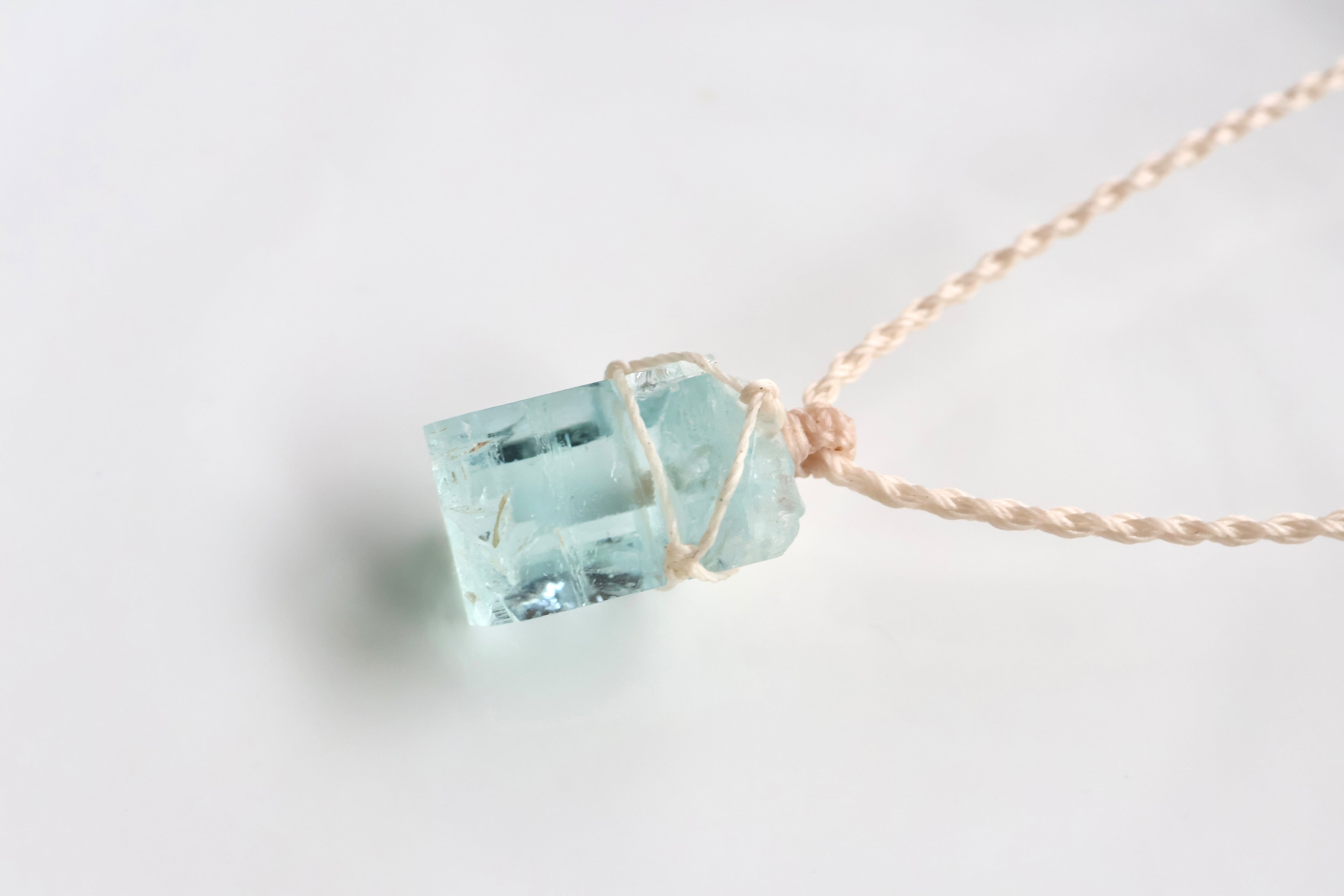 素材:蝋引き紐(ポリエステル)、アクアマリン (ネパール、タプレジュン産)