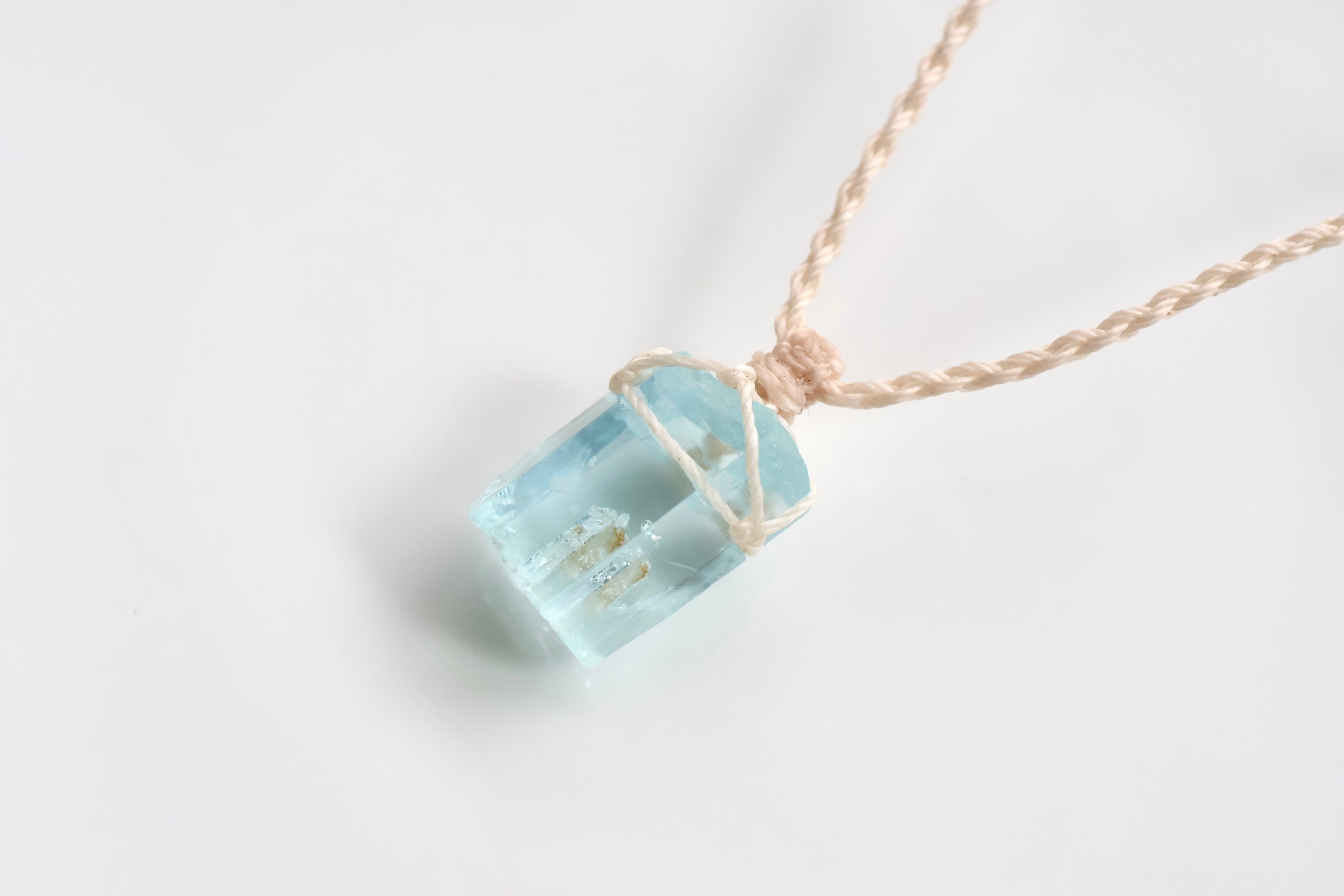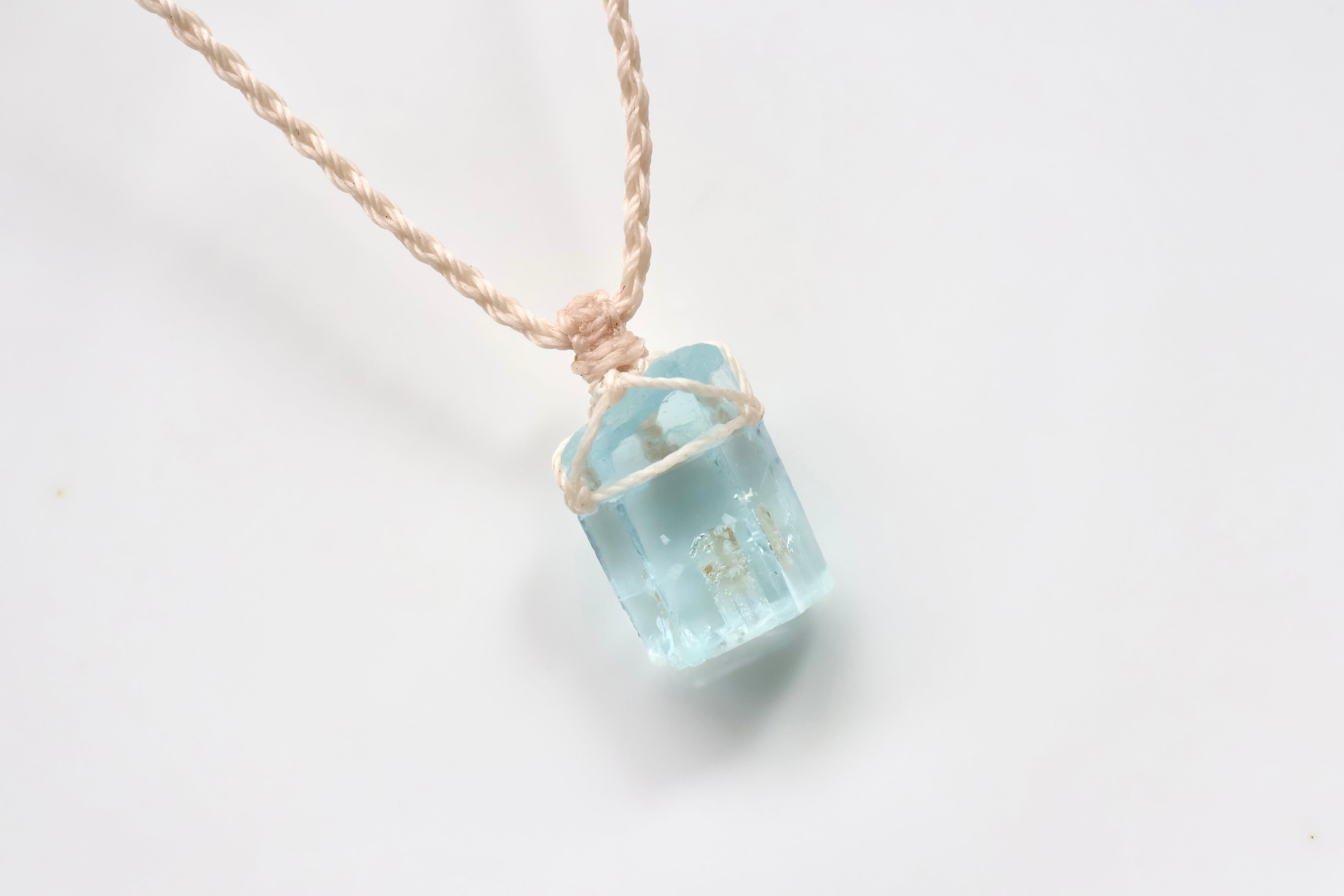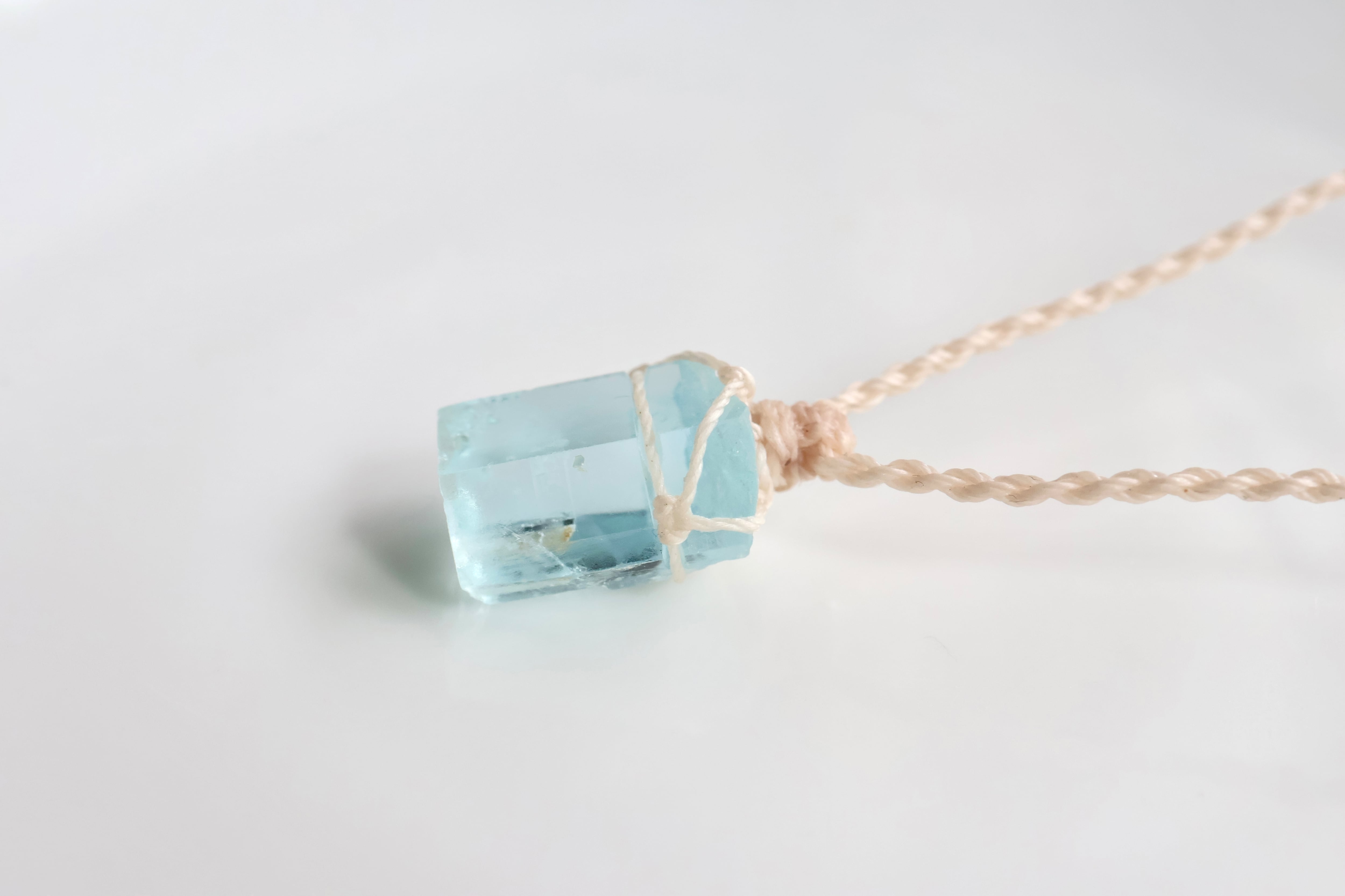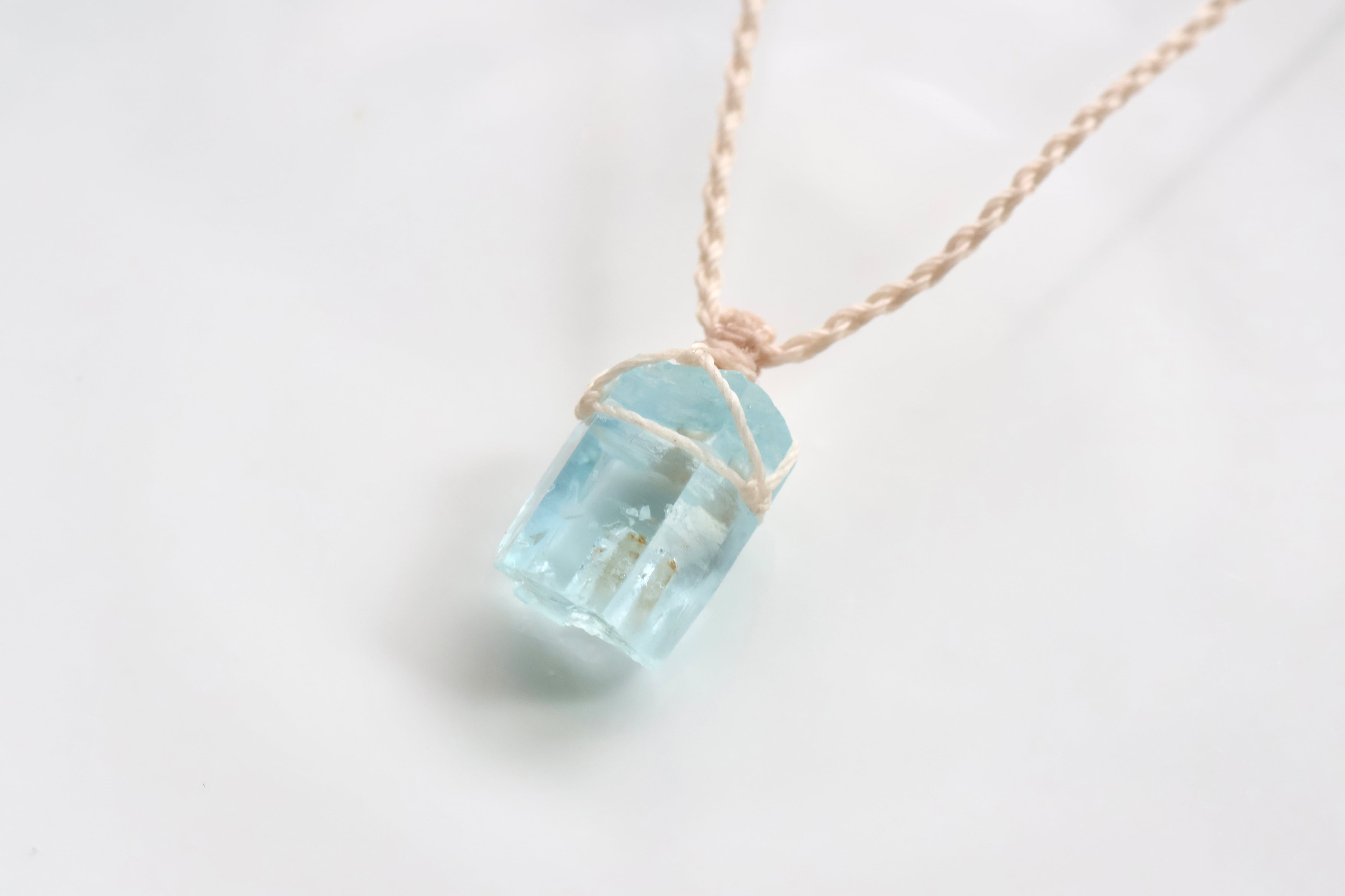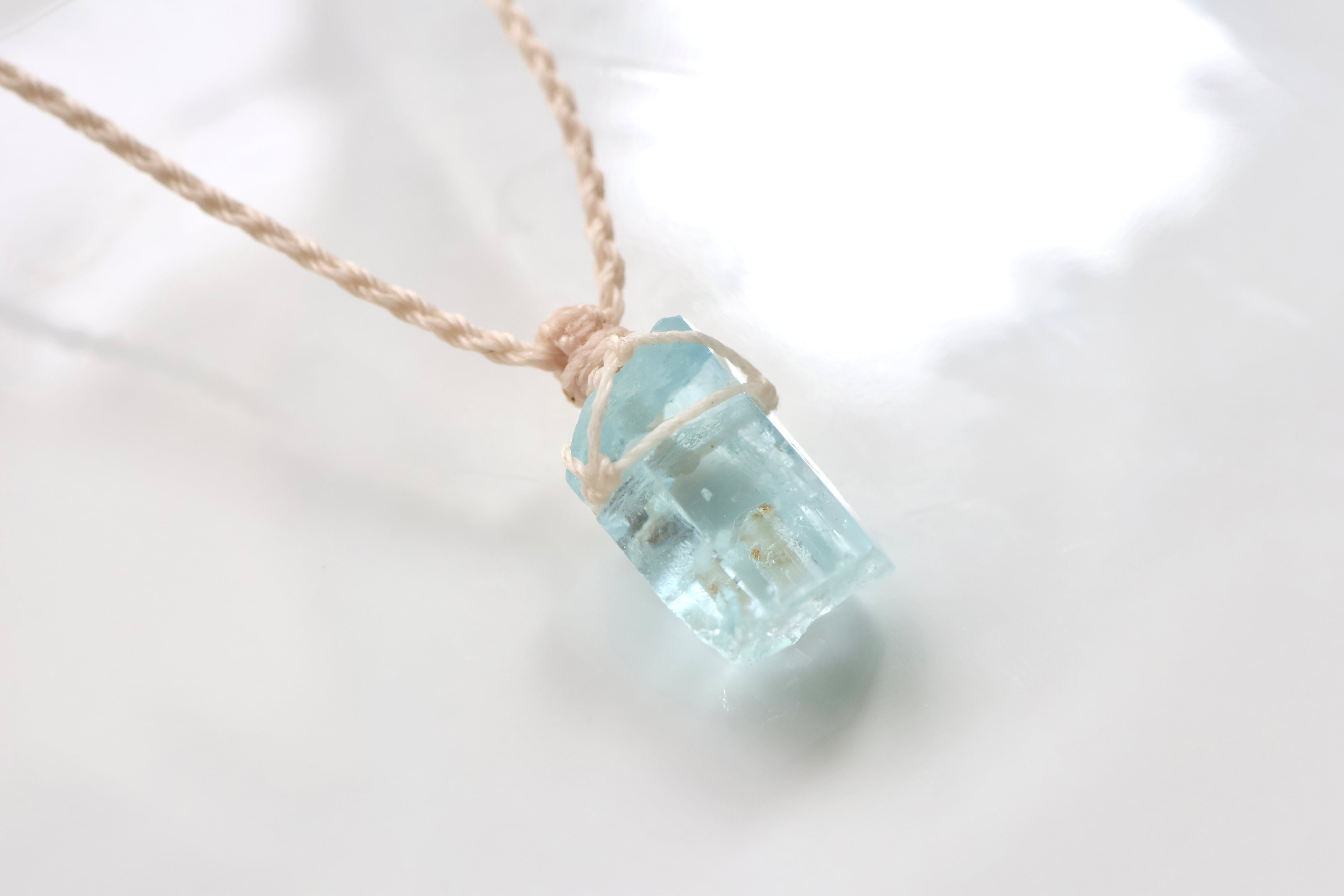 素材:蝋引き紐(ポリエステル)、アクアマリン (ネパール、タプレジュン産)