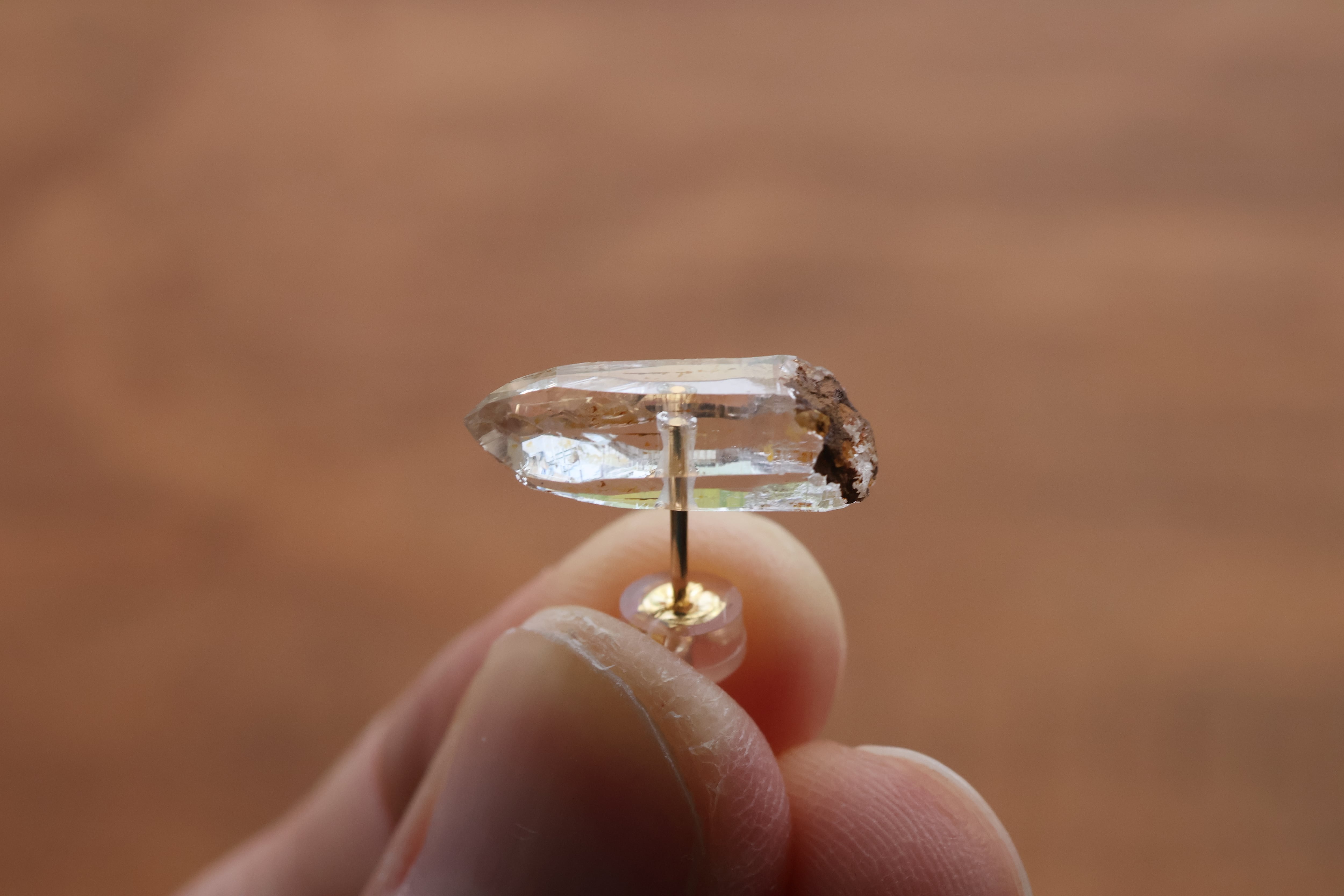 水晶原石をそのまま耳元へ
