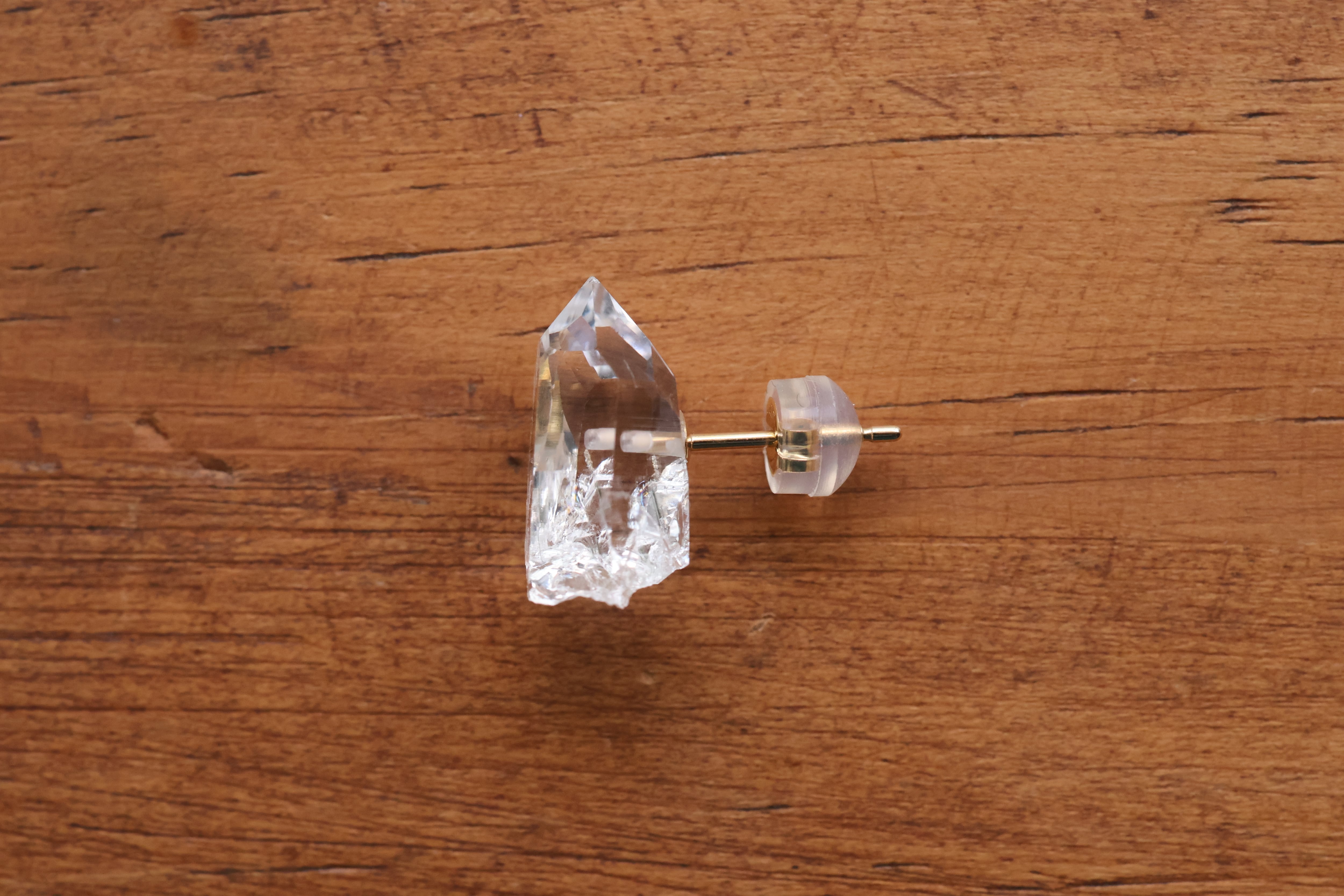 水晶原石をそのまま耳元へ
