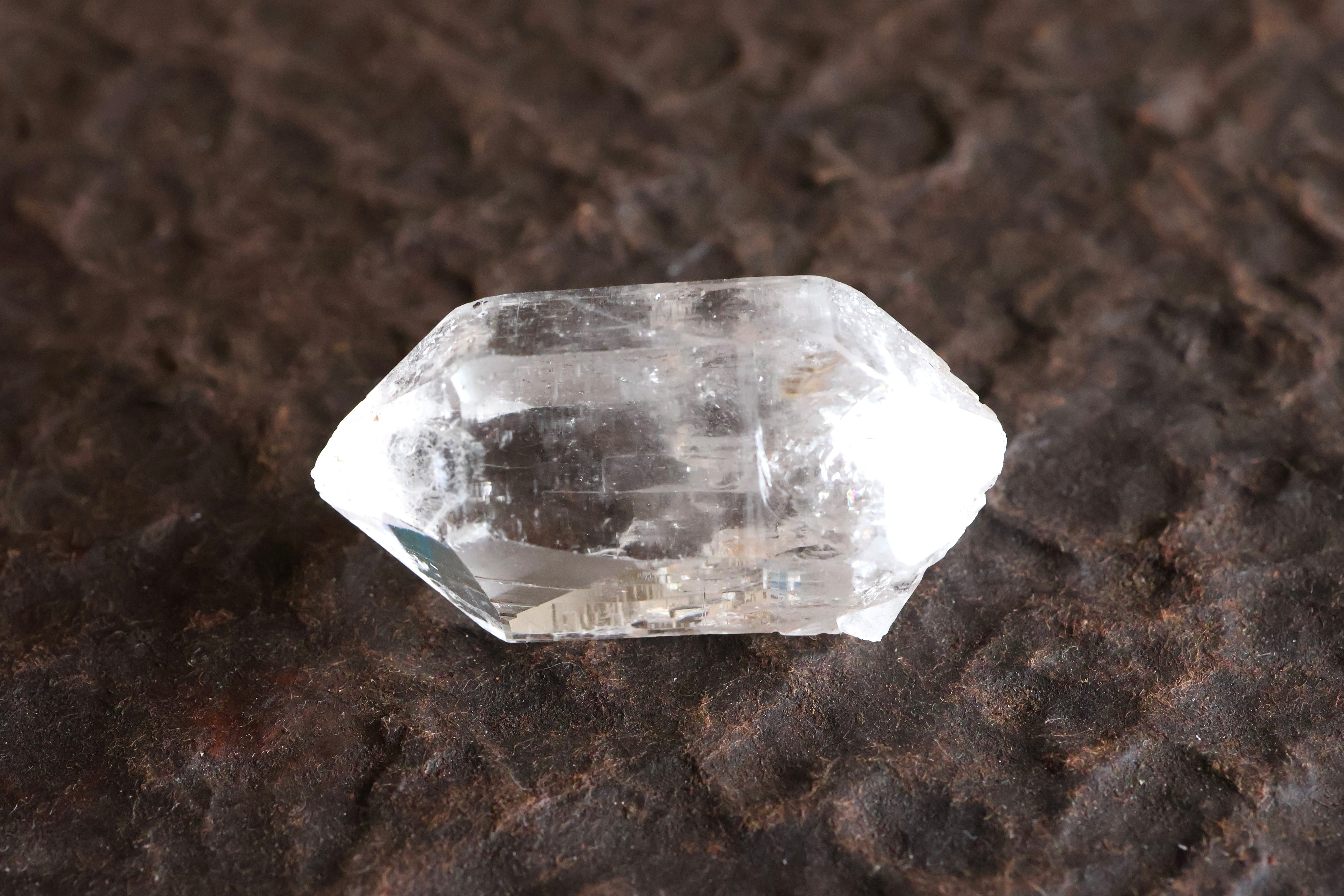 水晶の両側に先端をもつ両剣水晶(DT・ダブルターミネーテッド)です。