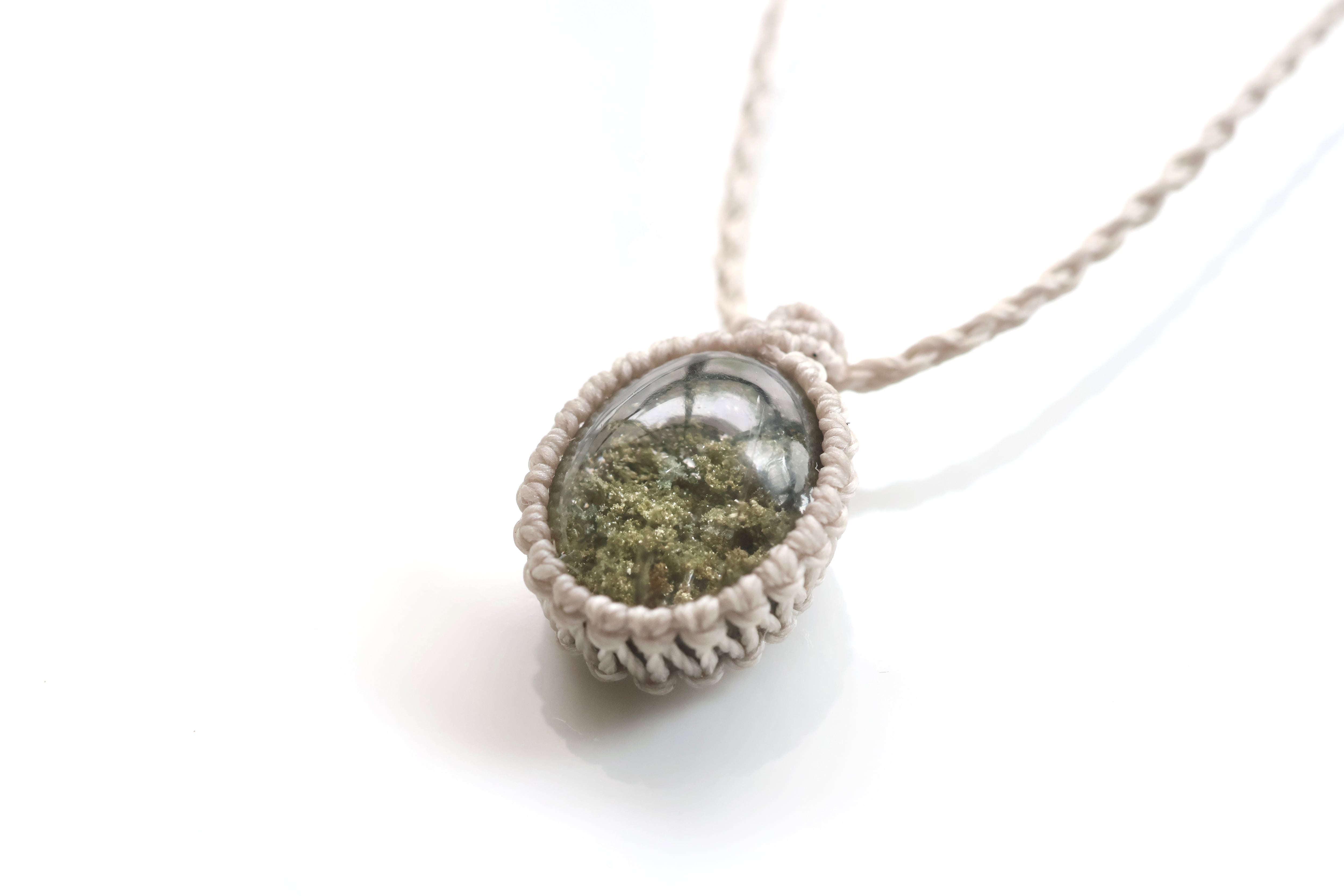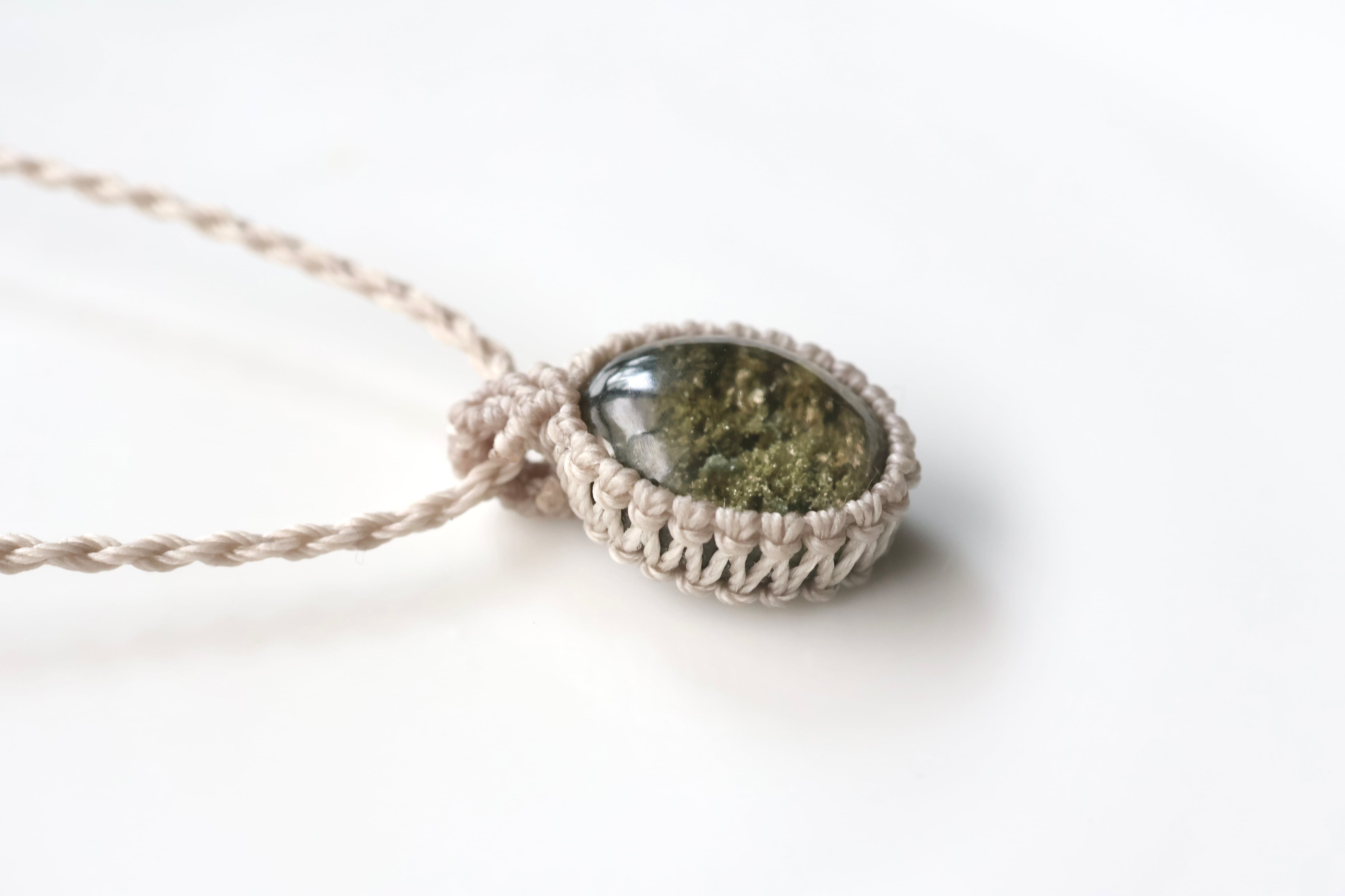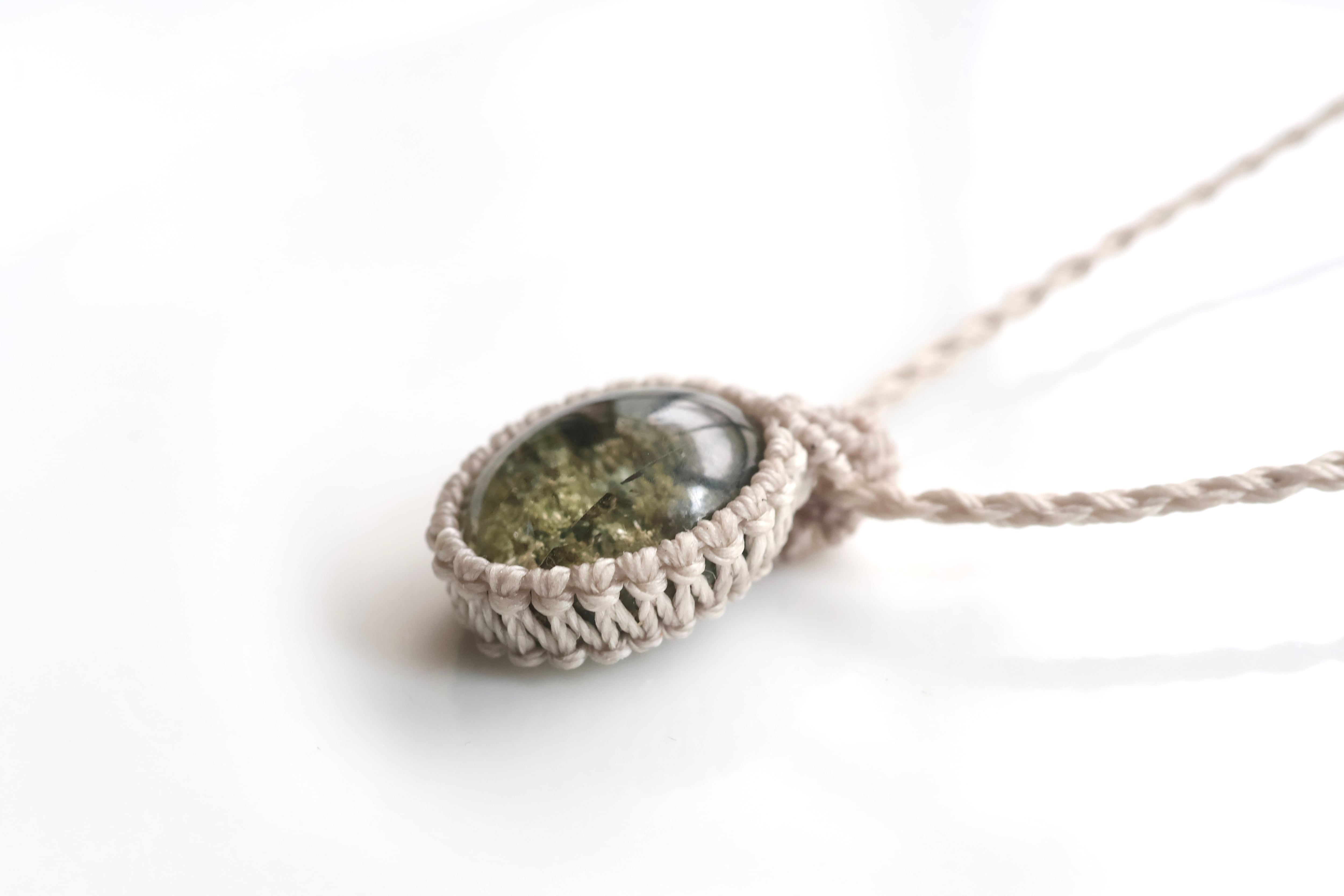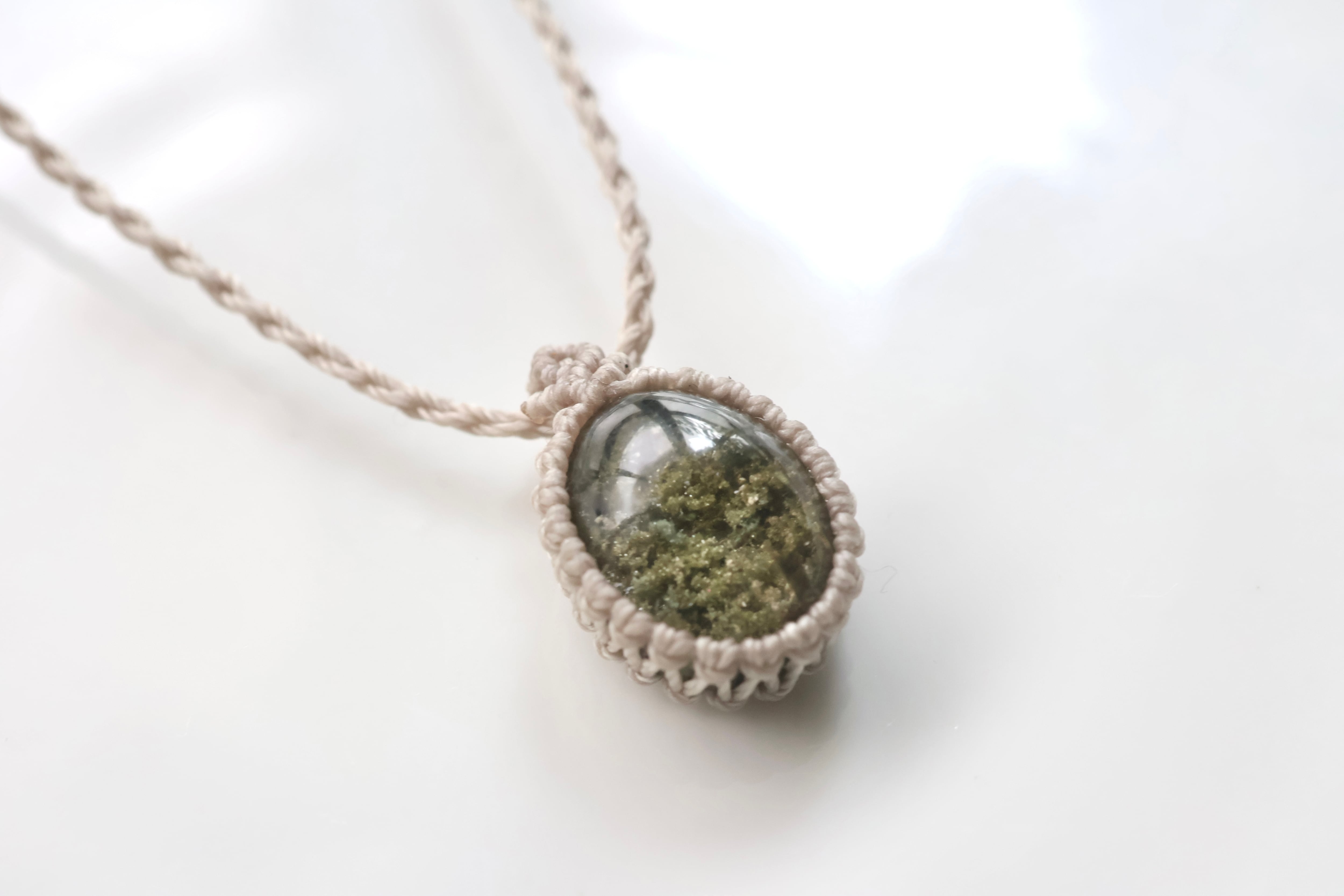ひと編みひと編みに作り手の想いがあふれる、温かみを感じるマクラメ編みのペンダント。