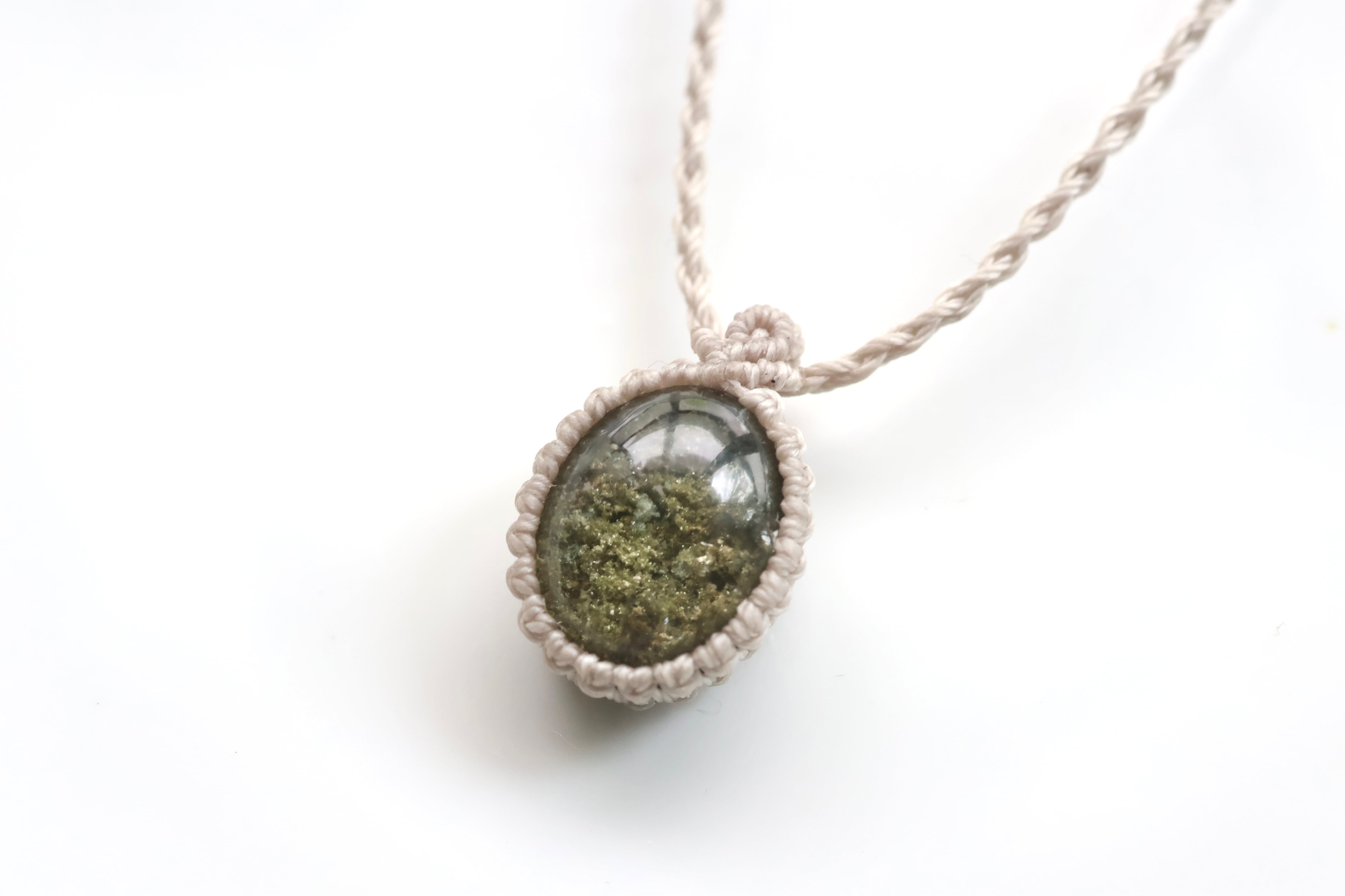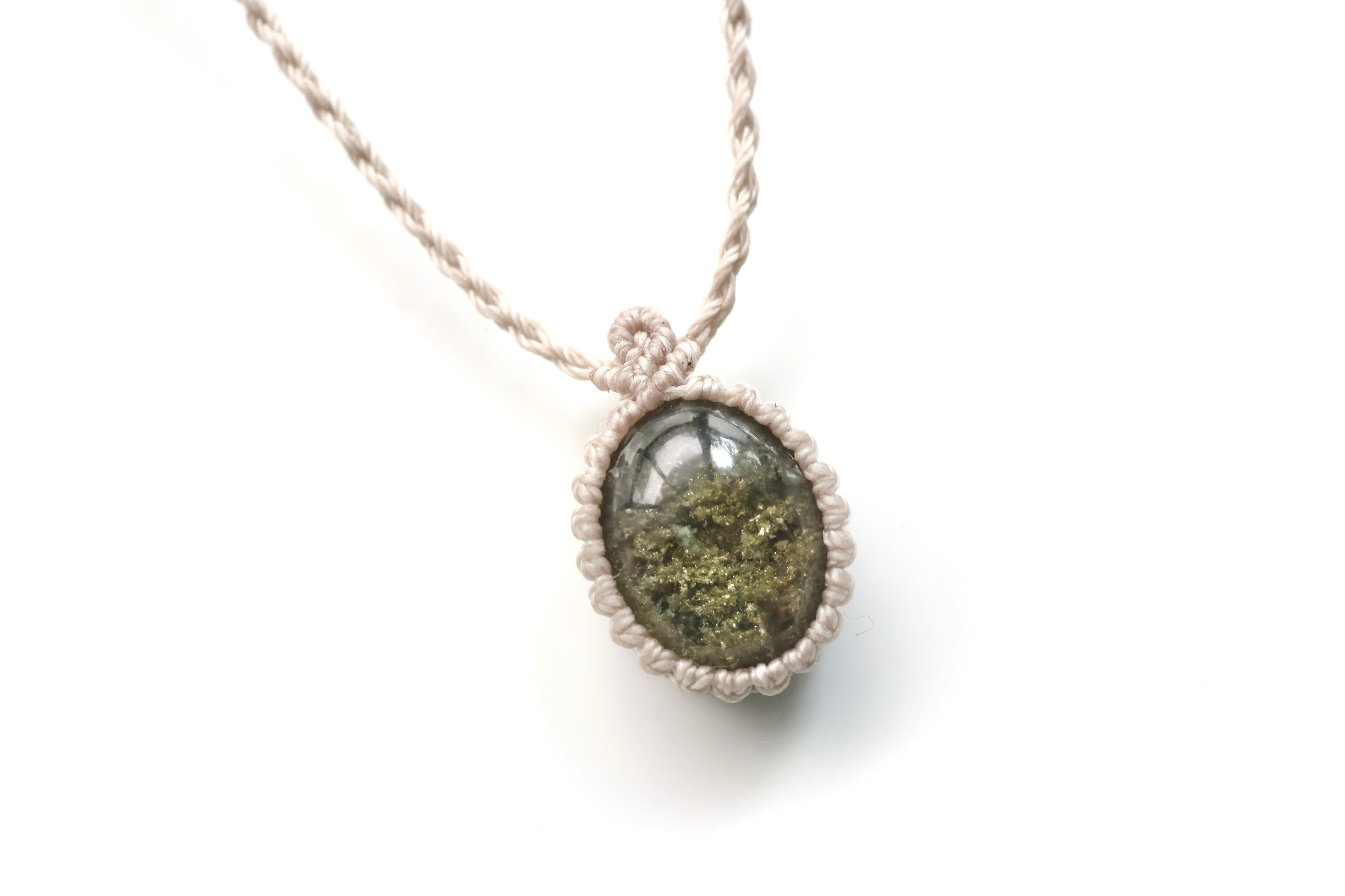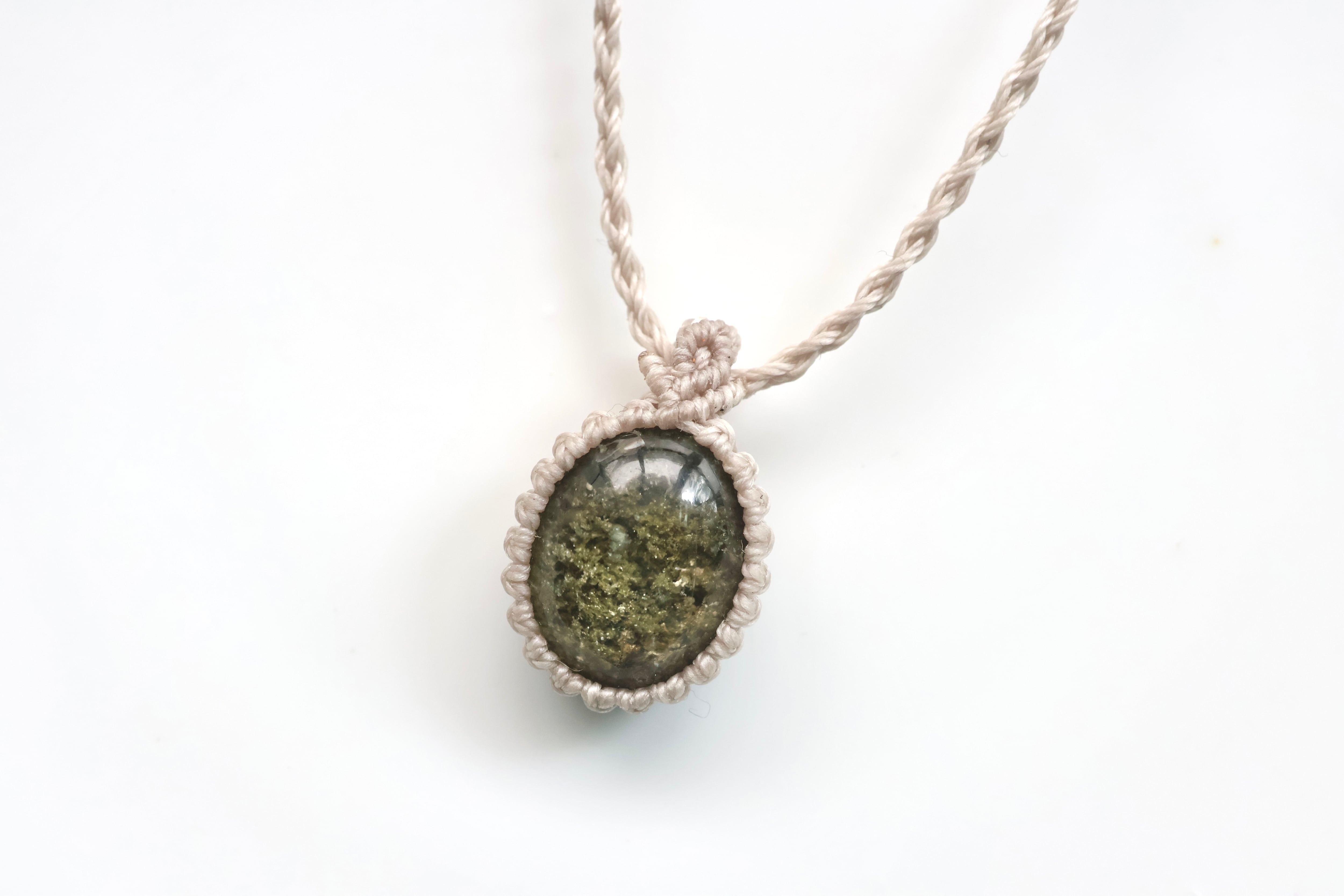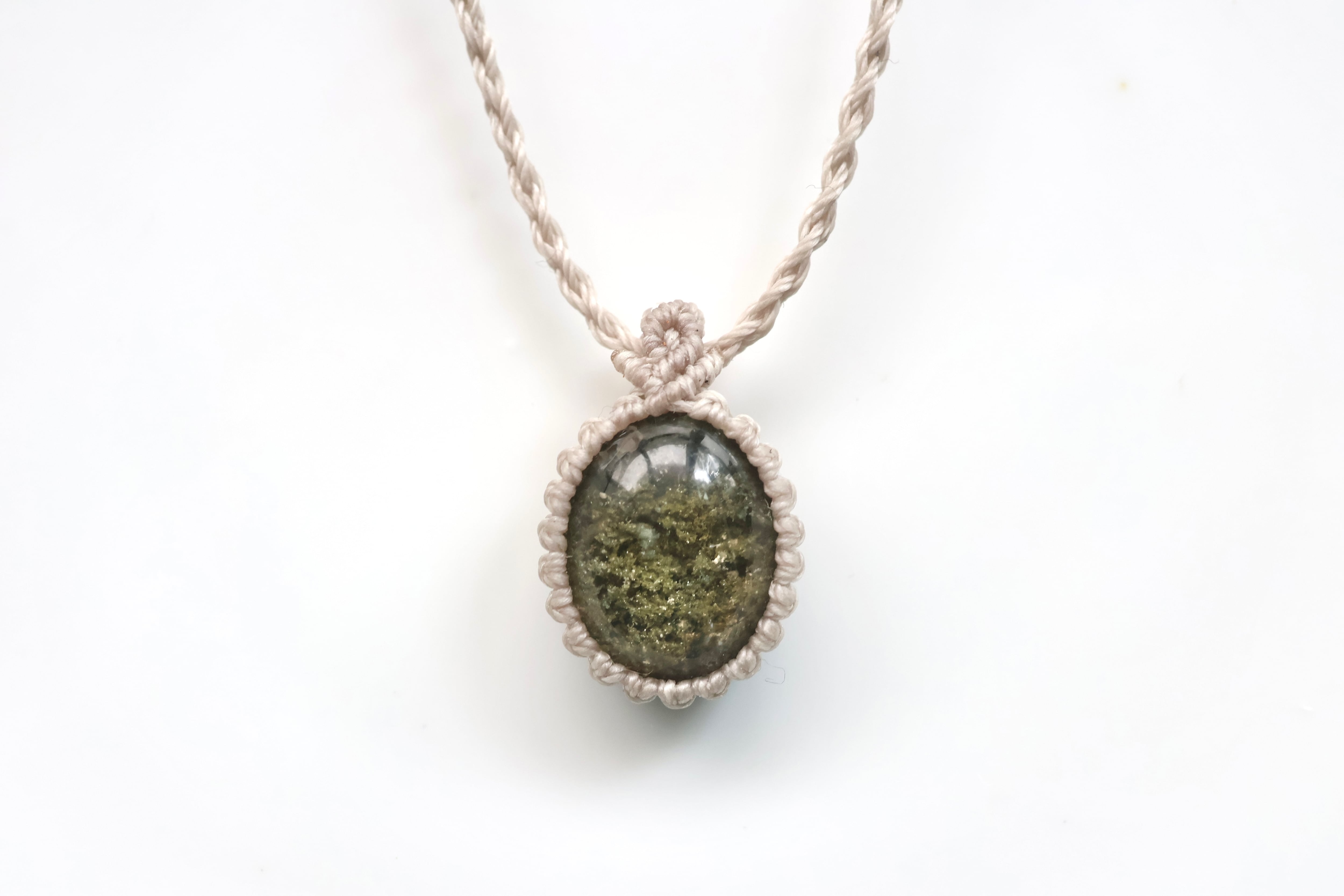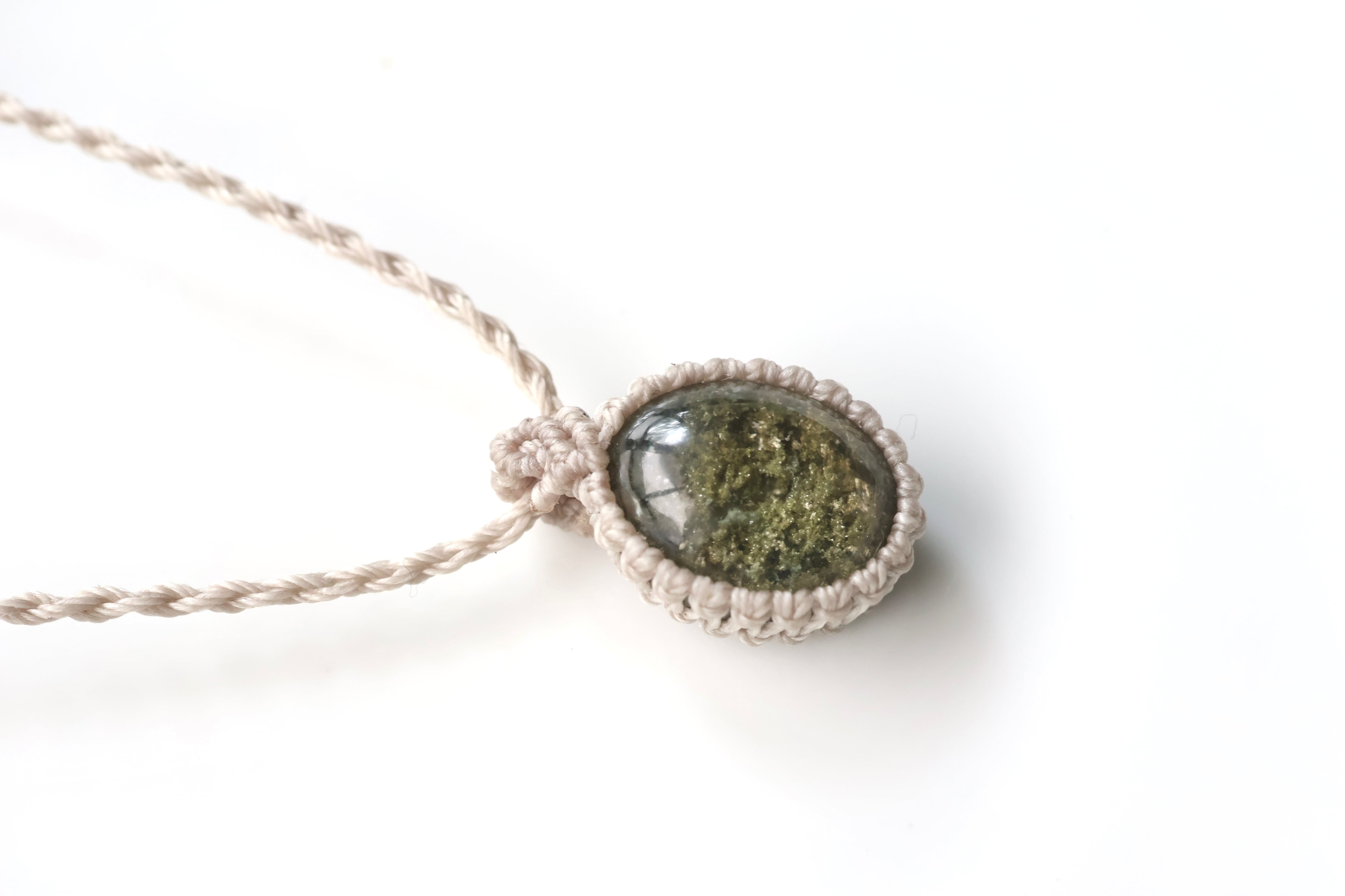 ひと編みひと編みに作り手の想いがあふれる、温かみを感じるマクラメ編みのペンダント。