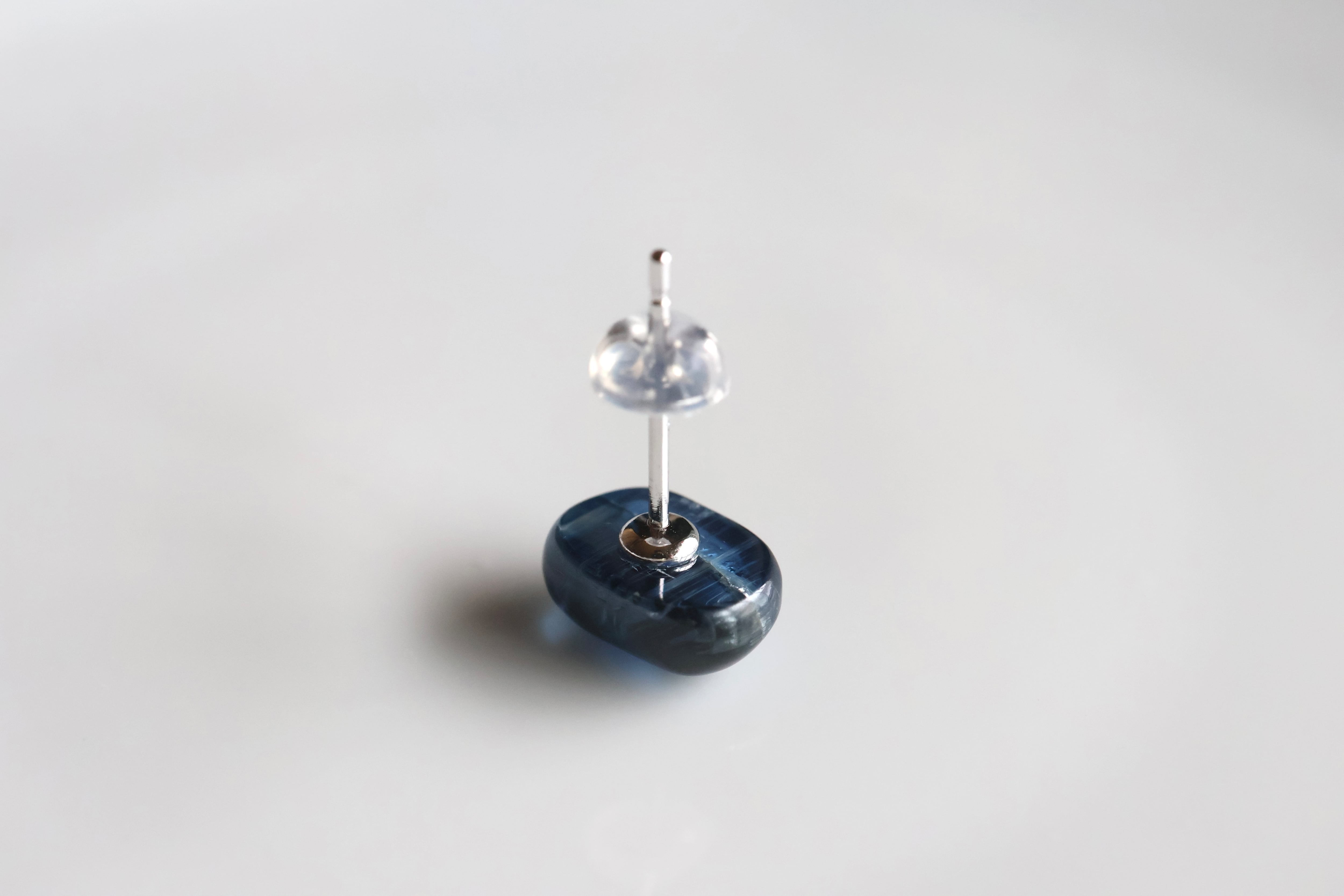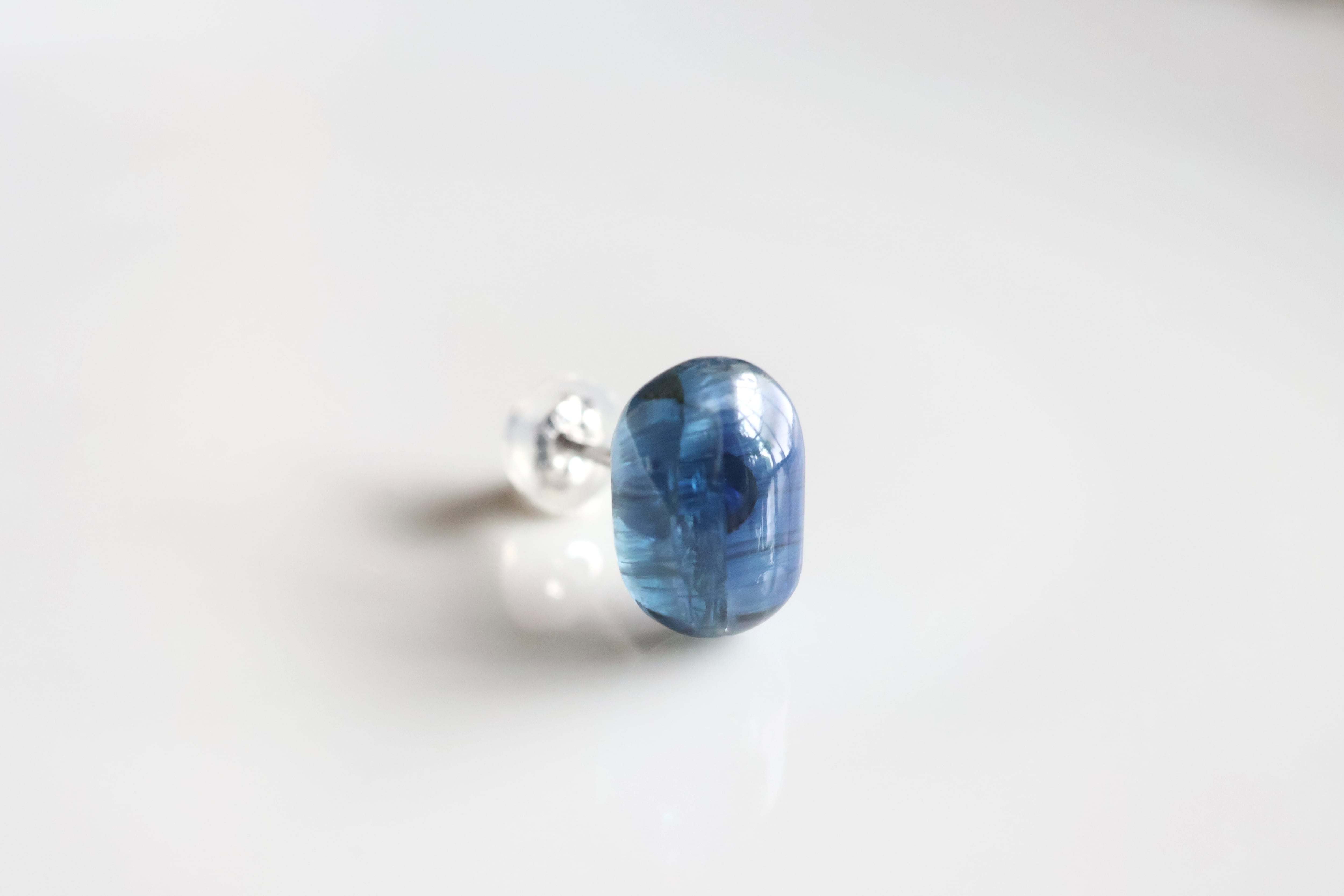 2025年10月にネパールで出合ったカイヤナイト(藍晶石)をシンプルなピアス仕立て上げました。