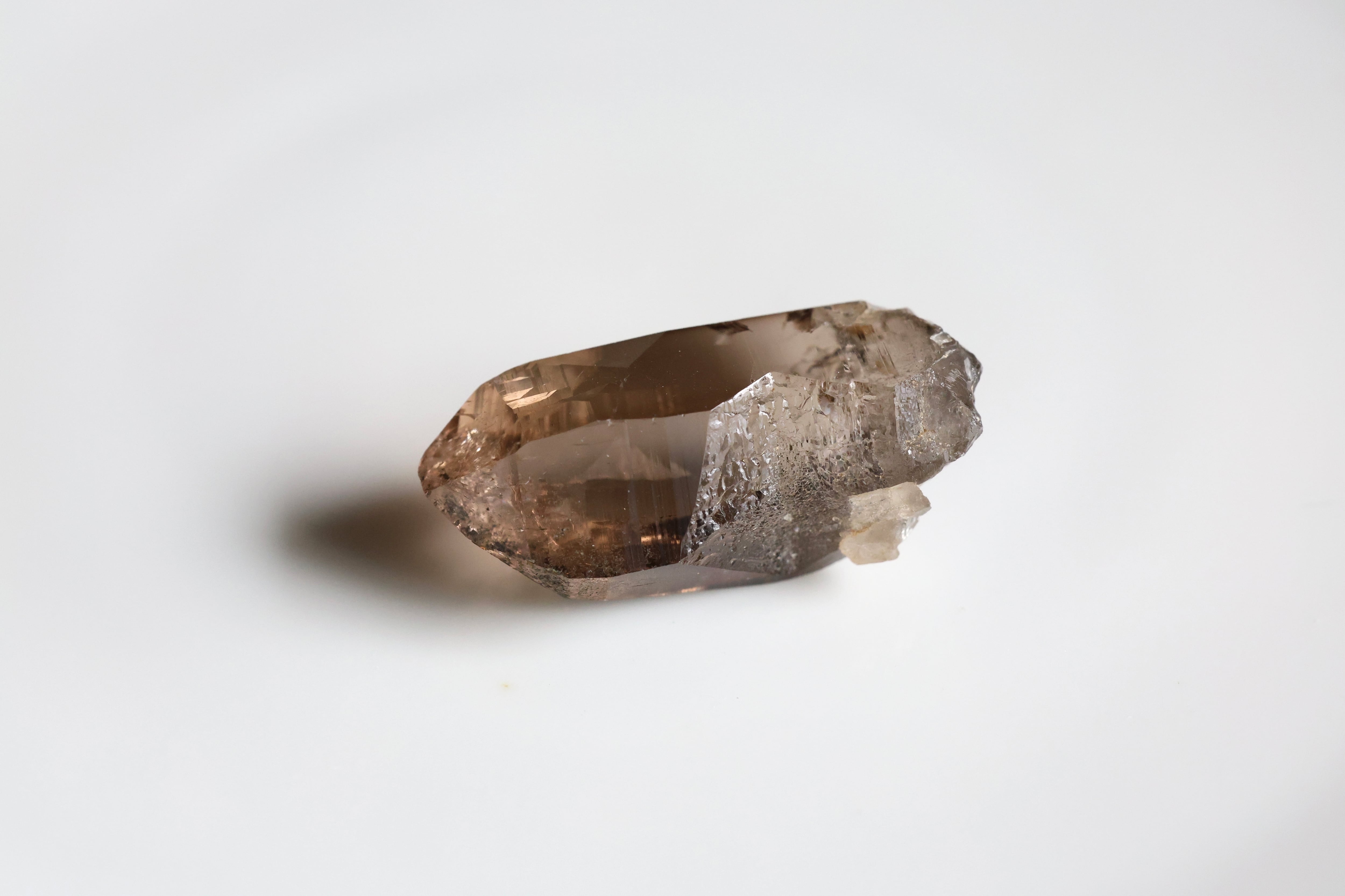 世界最高峰、エベレストがあるネパールの地で産まれ育ったガウリシャンカール産のヒマラヤ水晶です。過酷な環境の中育った水晶の石肌に無数にある細かな層のような横線は、今もなお地殻変動によりゆっくりと成長し動き続けるヒマラヤ山脈の時の流れを感じさせてくれます。