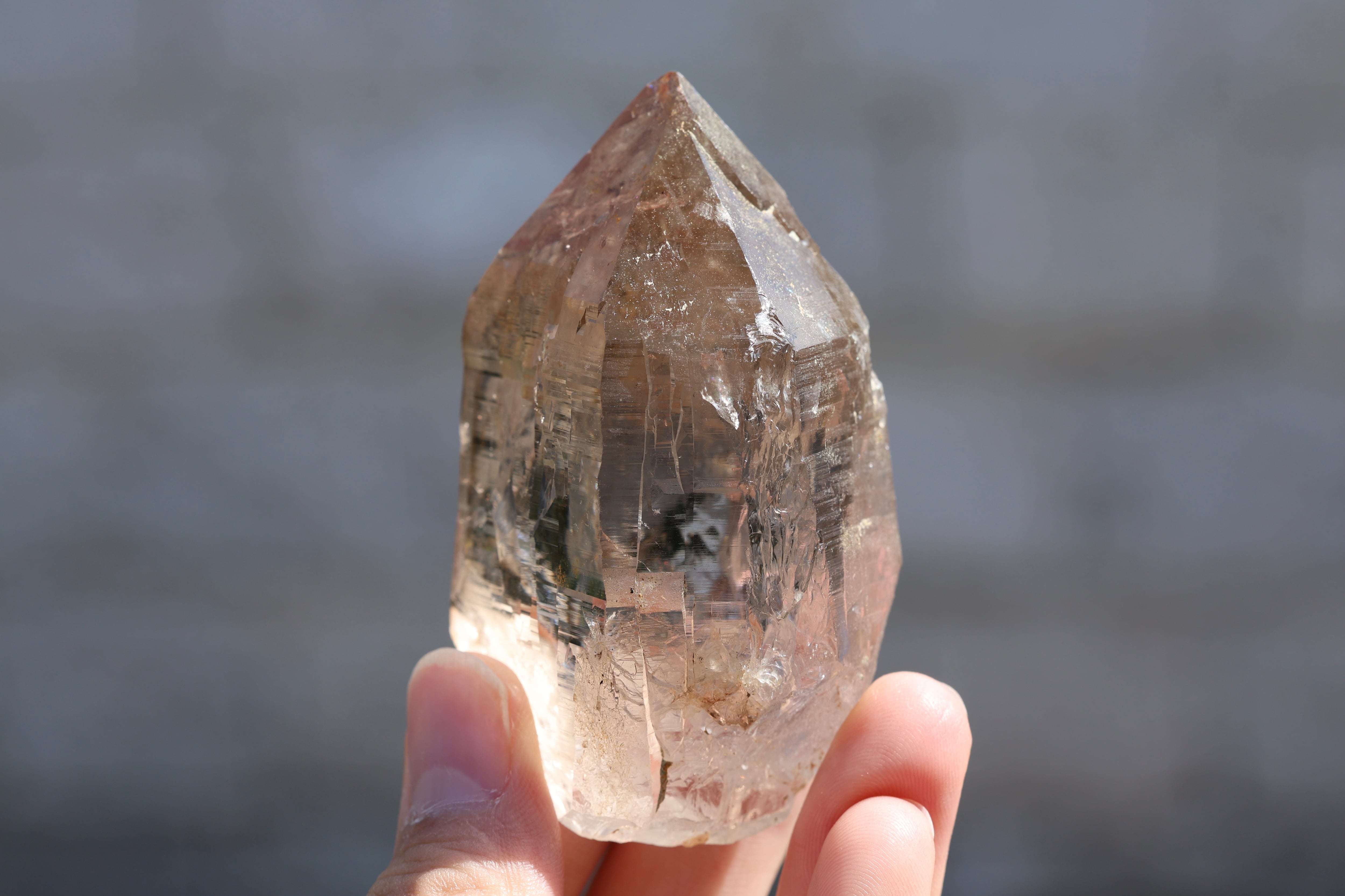 世界最高峰、エベレストがあるネパールの地で産まれ育ったガウリシャンカール産のヒマラヤ水晶です。過酷な環境の中育った水晶の石肌に無数にある細かな層のような横線は、今もなお地殻変動によりゆっくりと成長し動き続けるヒマラヤ山脈の時の流れを感じさせてくれます。