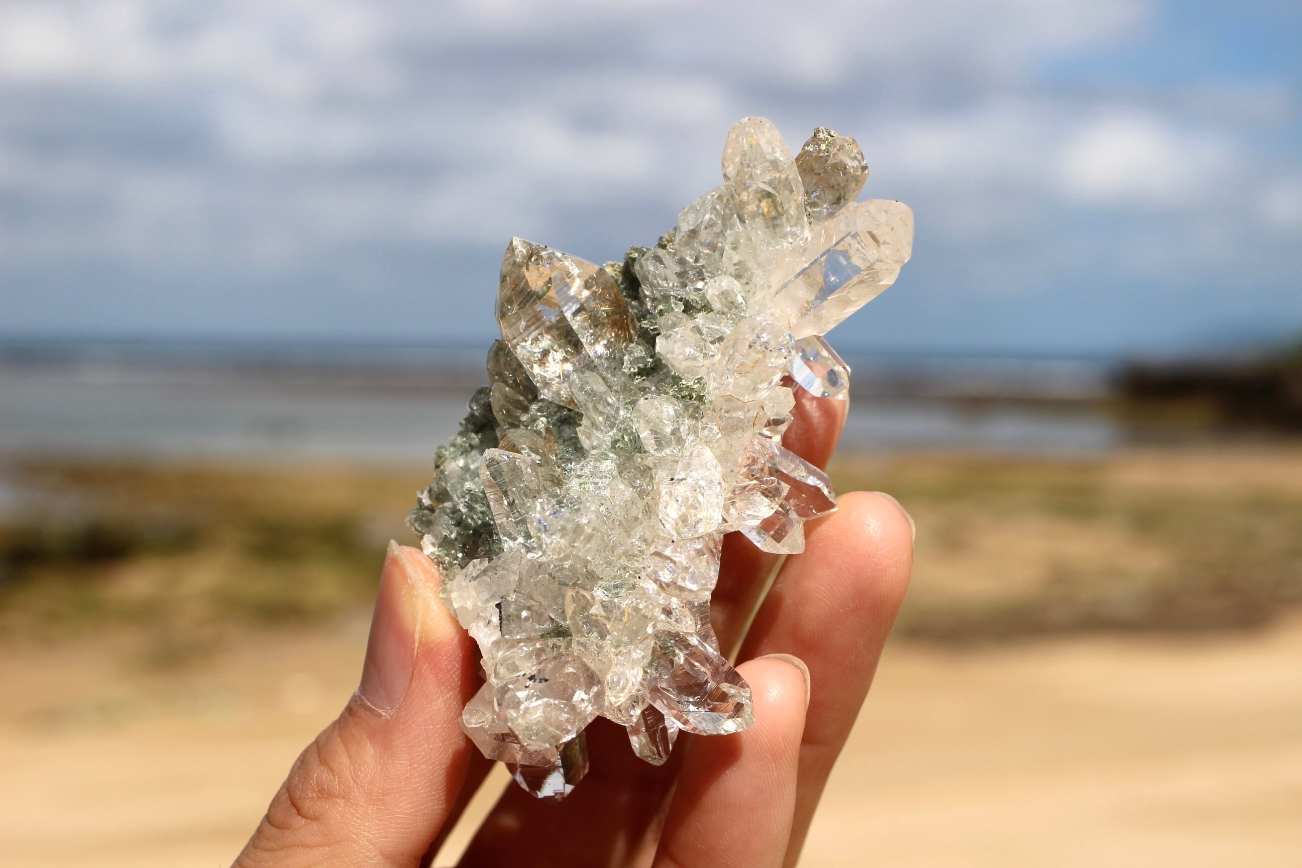 澄み渡る雪解け水のような 高い透明度が特徴のマニハール産水晶は村に住む人々の手で採掘されています。