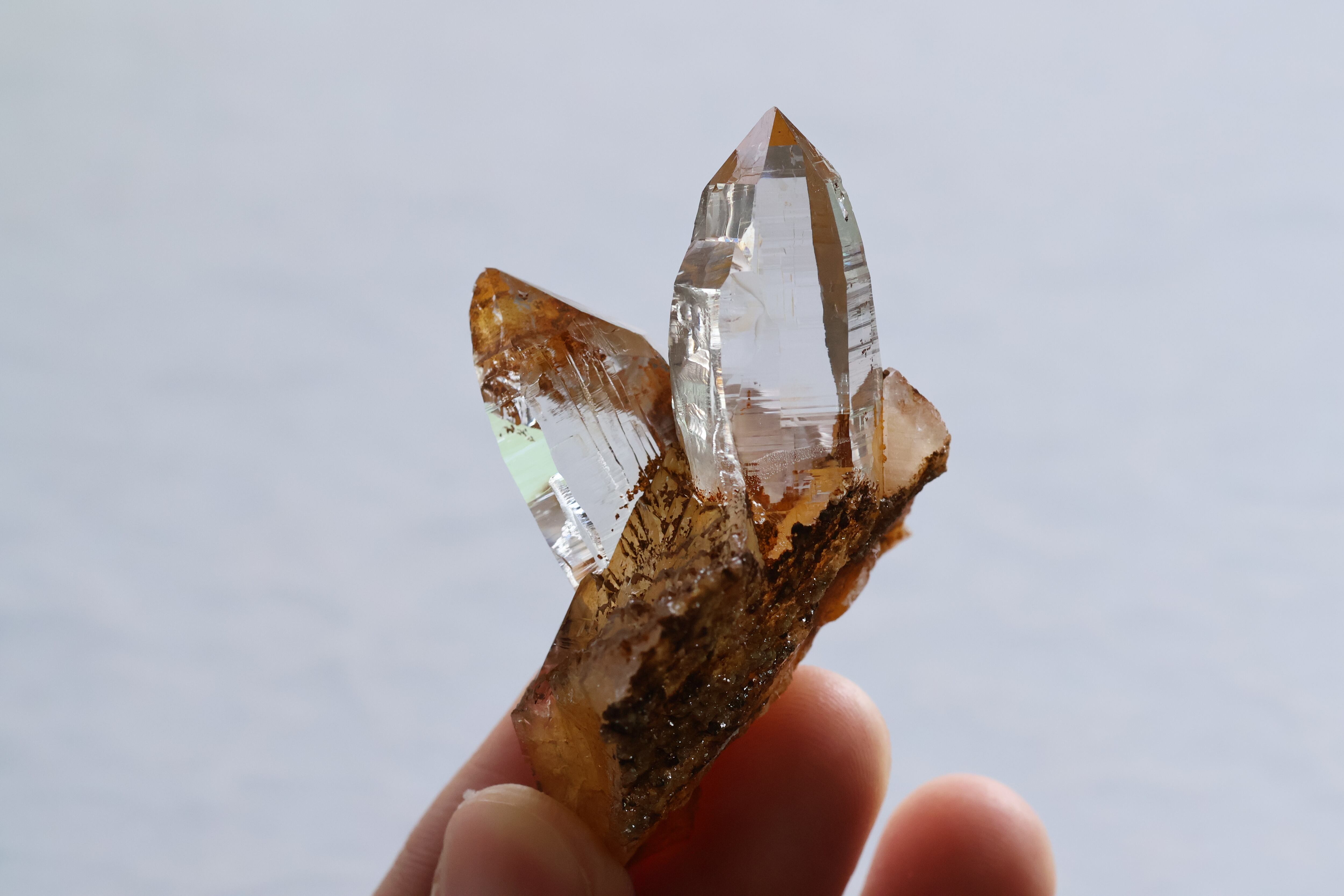 世界最高峰、エベレストがあるネパールの地で産まれ育ったガネーシュヒマール産のヒマラヤ水晶です。過酷な環境の中育った水晶の石肌に無数にある細かな層のような横線は、今もなお地殻変動によりゆっくりと成長し動き続けるヒマラヤ山脈の時の流れを感じさせてくれます。
