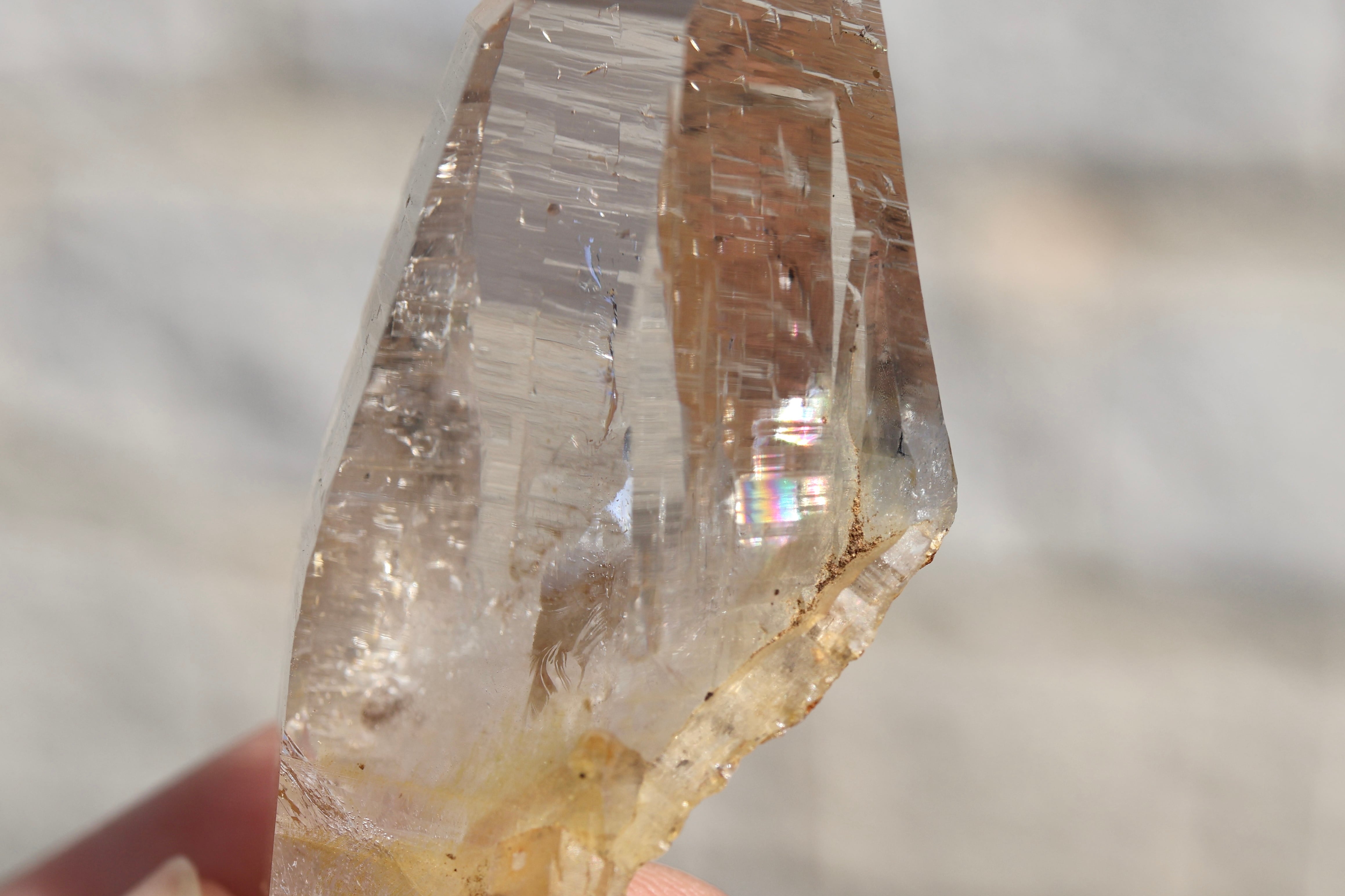 世界最高峰、エベレストがあるネパールの地で産まれ育ったガネーシュヒマール産のヒマラヤ水晶です。過酷な環境の中育った水晶の石肌に無数にある細かな層のような横線は、今もなお地殻変動によりゆっくりと成長し動き続けるヒマラヤ山脈の時の流れを感じさせてくれます。